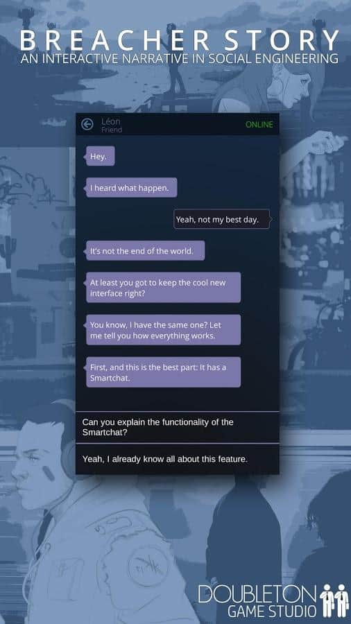 Breacher Hikayesi – siber güvenlik, komplo teorileri ve sosyal mühendislik dünyasına interaktif bir yolculuk. Bu oyunda, gerçek zamanlı olarak gerçekleşecek ilginç mobil konuşmaların dünyasına dalacaksınız. Bu oyunda, sizi bu dünyaya sokacak ve anlatıya başlamanızı sağlayacak birçok kahramanla yazışacaksınız. Sorulan sorulara dikkatlice cevaplar verin; bu, oyunun nihai sonucunu etkileyecektir. Hikayenin sonuna kadar sizi gerilimde tutacak kendi hikayeleri olan birçok karakterle etkileşimde bulunun. Oyunda, doğrudan seçimlerinize bağlı olacak birkaç farklı son seçeneği bulunmaktadır.