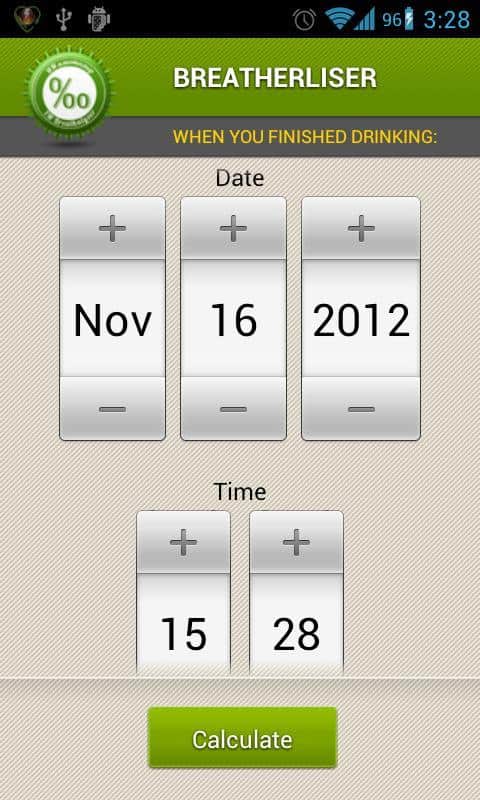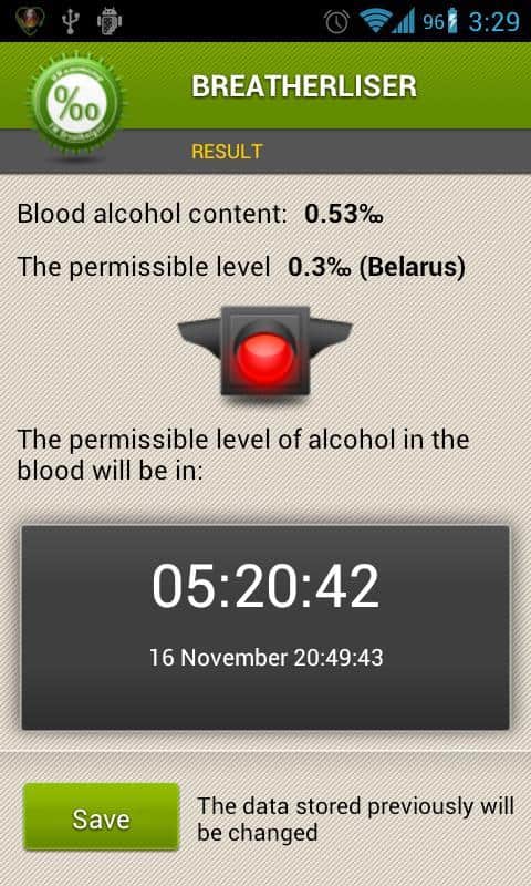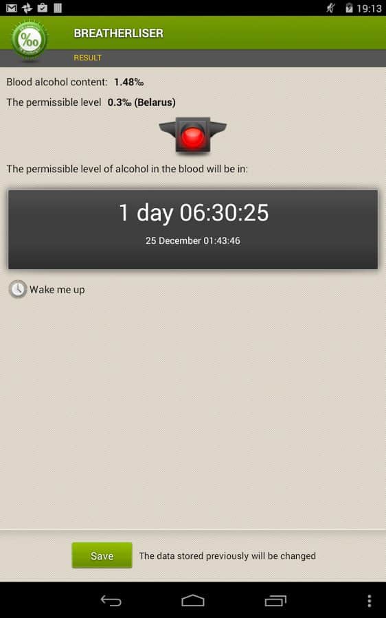 Sürücüler için, direksiyon başına geçmeden önce alkol almış olabilecekleri durumlar sıkça yaşanır. Alkol testi, alkol türü ve içilen miktar gibi birkaç parametreye dayalı olarak, promil miktarını hızlı ve doğru bir şekilde belirlemeye yardımcı olur. Belirlemede, program Watson formülünü kullanarak test sırasında en doğru verileri sağlar. Ayrıca, burada alkol seviyesinin araç kullanımı için kabul edilebilir bir seviyeye ne zaman düşeceğini kolayca öğrenebilirsiniz. Bu konuda "Beni Uyandır" uyarı fonksiyonu yardımcı olacaktır.