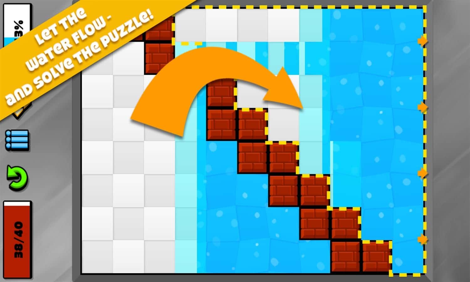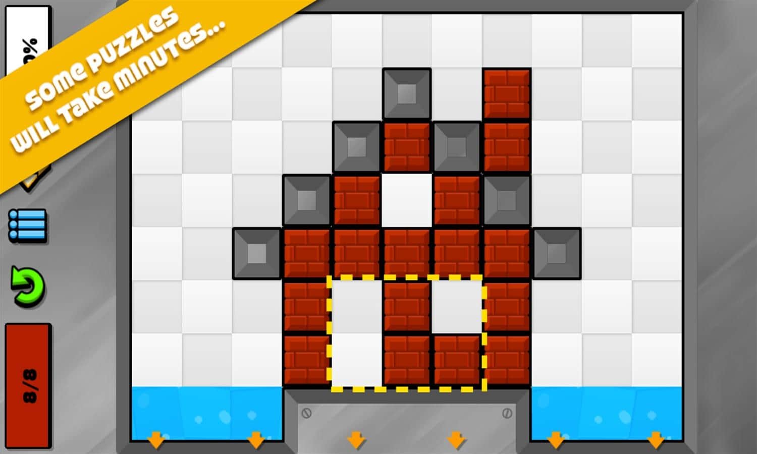 Briquid Mini – Gamious ve Game Troopers'ın tanınmış stüdyolarından Windows Phone için harika bir bulmaca. Bu oyunda, zorlayıcı görevleri nasıl çözeceğinizi düşünerek kafanızı oldukça yormanız gerekecek. Ana göreviniz, akselerometre yardımıyla ekranı çevirerek bir bölmeden diğerine su dökmektir. Başlangıçta oyun size çok basit görünebilir, ancak her yeni seviyede zorluk artacak ve görevi başarıyla tamamlamak giderek daha zor hale gelecek. Ekrandaki küpleri patlatarak kaldırın ve suyu kesik çizgiyle belirtilen alana dökün. Toplam su hacmi diğer alana geçmelidir; eğer miktar eşleşmezse, seviyeyi geçemediniz.