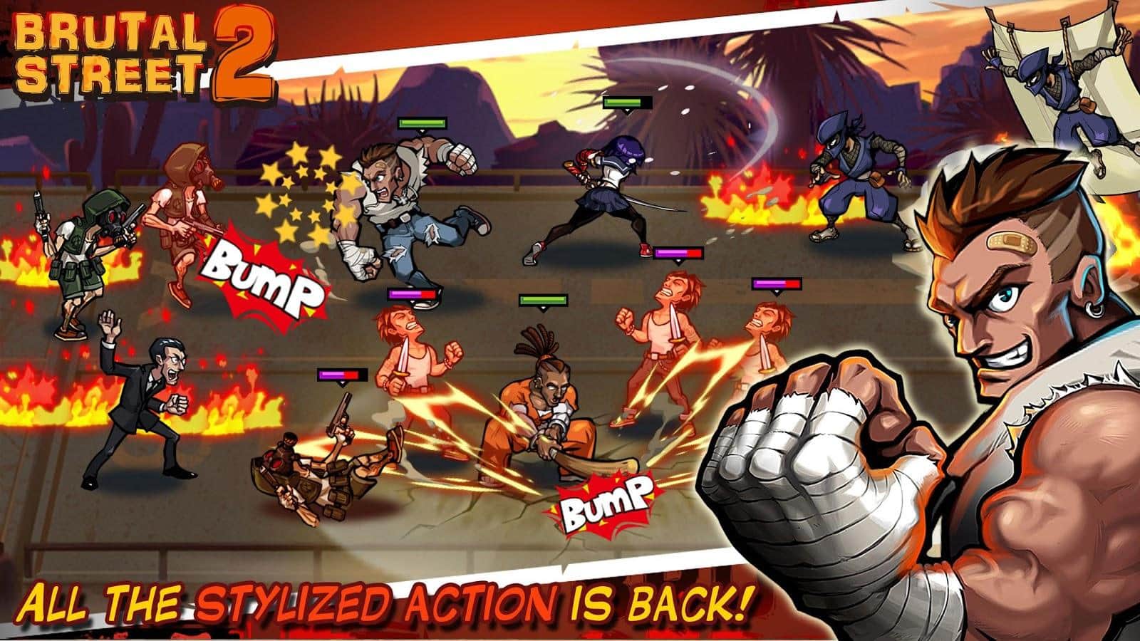Brutal Street2 – Android için bir oyun, burada çeteler ve mafya arasında şehrin kontrolü için bir savaşa katılacaksınız. Bu oyunda şehrin çeşitli bölgelerinde hareket edecek ve sayısız düşmanla karşılaşacaksınız. Kendinize benzersiz yeteneklere sahip kahramalardan oluşan küçük bir grubu kontrol edin ve onları savaşta kullanın. Yenilmez bir savaş taktiği geliştirin ve çeşitli silahlar ve teknikler kullanın. Yeni kahramanları keşfedin ve onların yardımıyla şehirde tüm gücü ele geçirin.