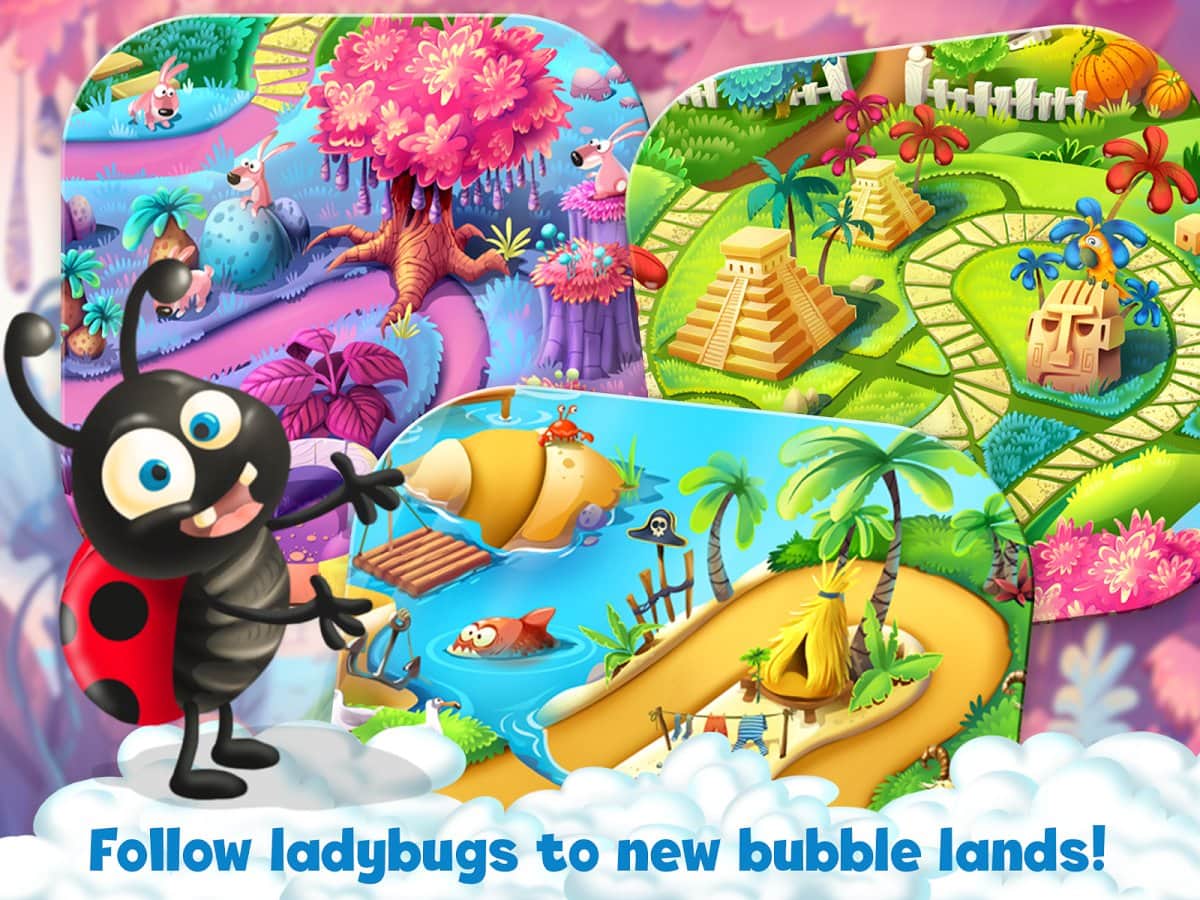 Bubble Buggie Pop – Ekranın üst kısmındaki baloncukların topluluğuna renkli baloncuklar atın ve baloncukları patlatın. Aynı renk baloncukların topluluğuna isabet edecek şekilde baloncukları hedefleyin ve atın. Göreviniz, seviyedeki tüm baloncukları oyun alanından temizlemek ve maksimum puanı kazanmaktır. Renkli dünyada seyahat edin ve bu oyunun sevimli kahramanları olan örümcek ve uğur böceği ile tanışın. Beklenen bonusları kazanın ve zorlu durumlarda bunları kullanarak seviyeyi daha hızlı geçin. Rekorlar kırın ve bu heyecan verici oyunun en iyi oyuncularıyla yarışın.