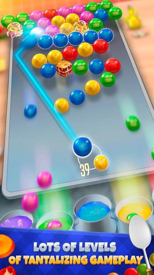 Bubble Chef – renkli baloncukları vurun ve şeflere yeni tarifler edinmelerine yardımcı olun. Bu oyundaki ana hedefiniz, mümkün olduğunca çok aynı renkten topları bir araya getirmek ve patlatmaktır. Tüm çevikliğinizi ve nişan alma yeteneğinizi kullanarak, yukarıdaki topların kümesine renkli topları fırlatın ve eğlenceli görevleri tamamlayın. Yolda karşılaştığınız tüm engelleri aşın ve yeni lezzetli yemekler için yeni malzemeleri açın. Bonuslar ve güçlendirmeler kazanın ve bunları oyunda kullanın. Dünyanın dört bir yanında birçok restoran açın ve ziyaretçilerden coşkulu geri dönüşler alın.