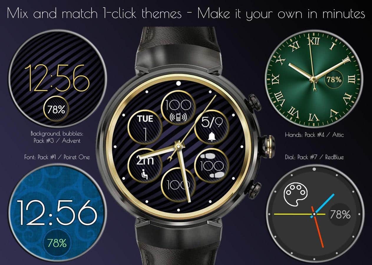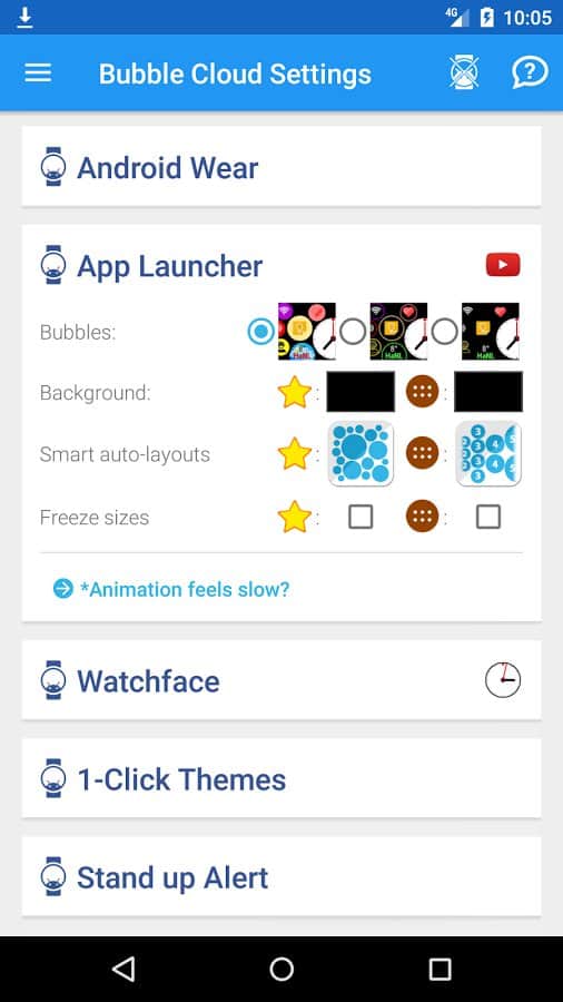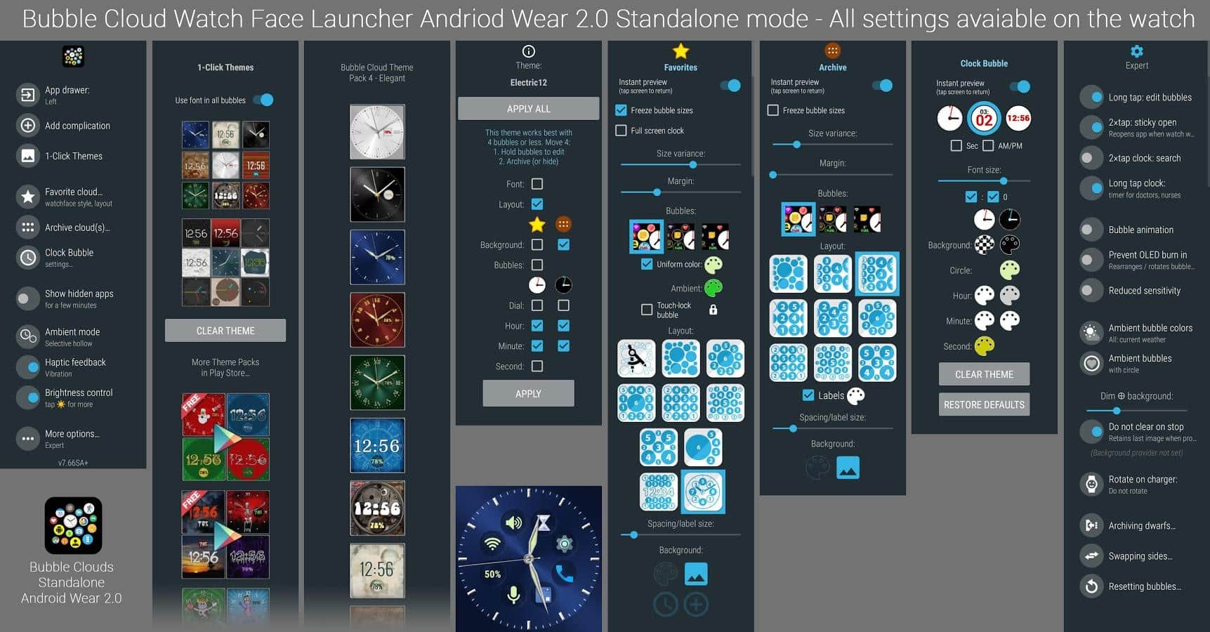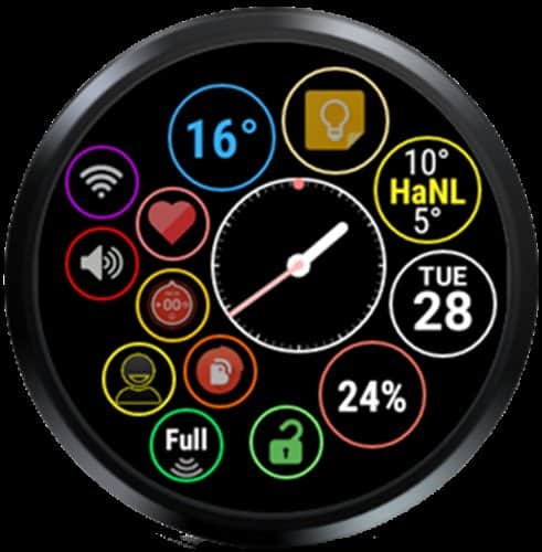 Apple Watch'taki uygulama ızgarası ilginç, taze ve sıradan görünmüyor. Android Wear'da aynı şekilde sahip olmak için burada sunulan başlatıcıyı indirmeniz yeterli, ayrıca uygulamaların yanı sıra tercih edilen kişiler veya yer imleri de aynı şekilde görüntülenebilir. Baloncuklar, soldan kaydırarak "çekilir" ve gerekirse benzer kaydırmalarla daha ileri kaydırılır. Saatlerde kullanımın yanı sıra, bu uygulama akıllı telefon veya tablette de oldukça normal bir şekilde çalışabilir: simgelerle bir klasör oluşturulur, bu da baloncuklar şeklinde açılır. Ayarlar kısmında dairelerin rengi ve boyutu, arka plan ve daha fazlası seçilebilir.