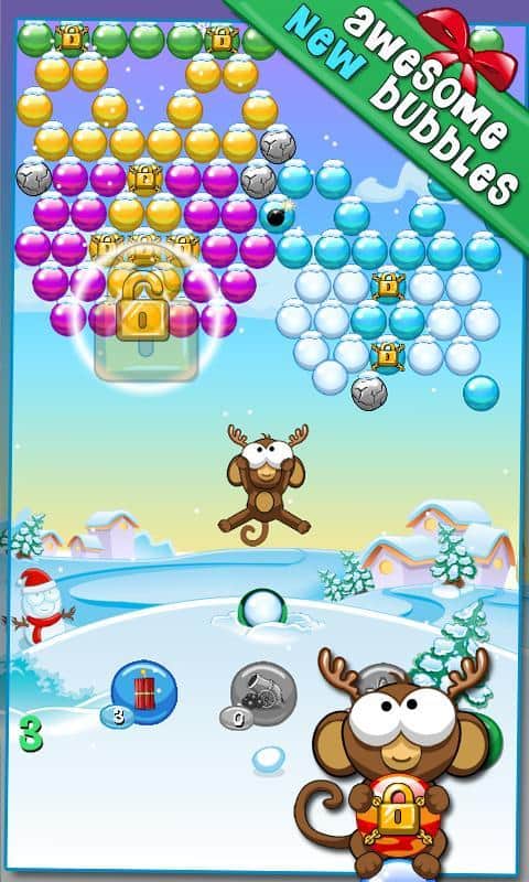 Bubble Monkey Noel - Android için bir oyundur, burada balonları patlatmanız gerekiyor. Önceki versiyonlarda olduğu gibi, bu yılbaşı versiyonunda da sizi yeni balon türleri, çok sayıda seviye ve şenlikli bir atmosferle güzel grafikler bekliyor.