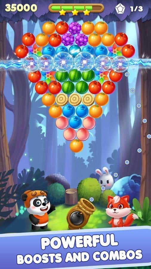 Bubble Panda Kurtarma – patlayan meyveler ve canlı grafikleri ile ilgi çekici bir android oyunu. Bu oyunda Pipi isimli pandaya yardım edecek, sulu meyveleri patlatacak ve böylece sevgilisi Lale'ye giden yolu açacaksınız. Bilinmeyen güçler iki aşıkları ayırdı ve şimdi kaderleri sizin ellerinizde. Üstteki meyve kümelerine renkli meyveler fırlatın ve meyveleri patlatarak uzun zincirler oluşturun. En az hamleyle seviyeleri geçin ve ulaşılacak hedefe yaklaşın. Bu oyunda panda, tavşan ve yavru köpek gibi sevimli karakterlerle tanışacak ve hoş müzik eşliğinde oyunun tadını çıkaracaksınız. Bu oyunda 100'den fazla seviyeyi geçin ve kendi rekorunuzu kırın.