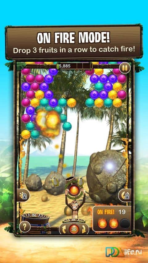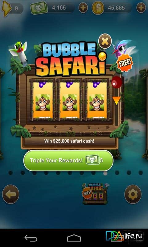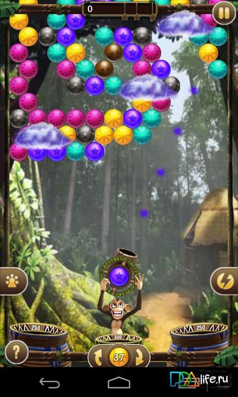 Baloncuk Safari - Android için bir üçlü eşleştirme oyunu. Uzak ormanlarda maymunlar yaşıyordu ve bir gün bu maymunların evine kaçak avcılar saldırdı ve tüm maymunları yanlarına aldı. Ama bir maymun kurtulmayı başardı ve şimdi silahını alıp onların peşine düşecek. Maymuna yardımcı olun, aynı renkten baloncuklara ateş ederek mümkün olduğunca fazla puan kazanın.