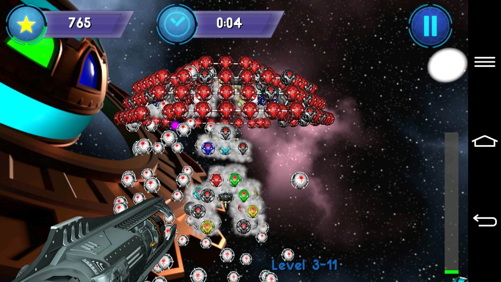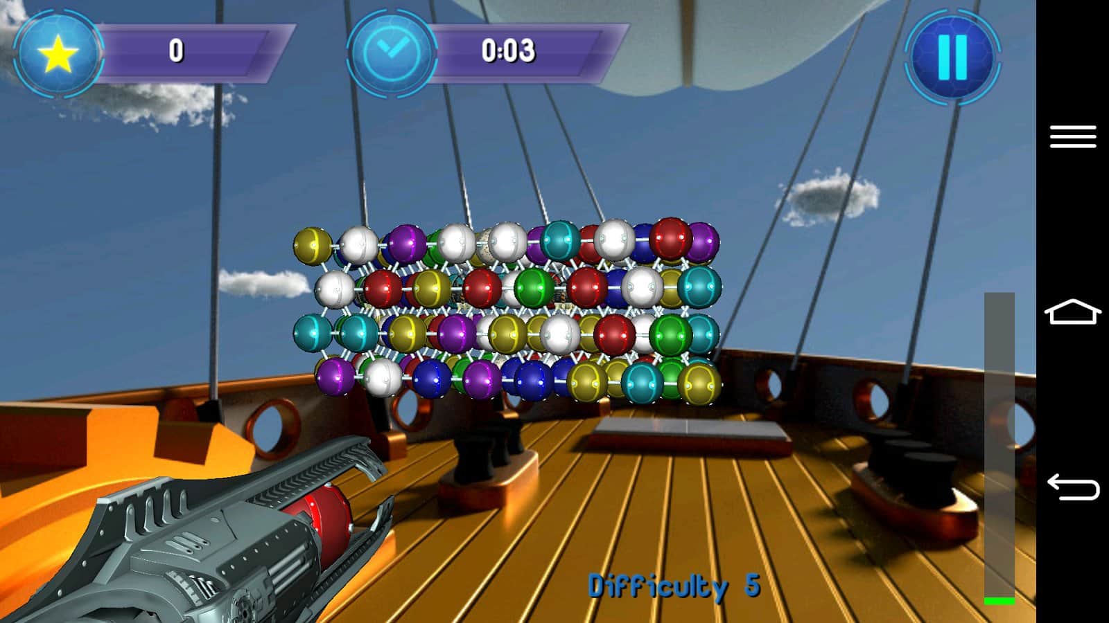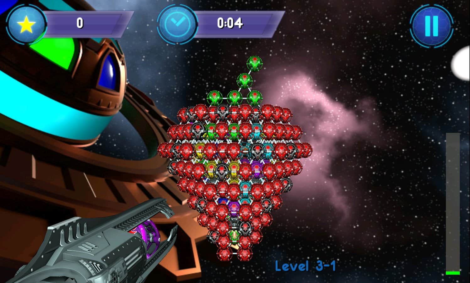 Bubble Shooter 3D – ünlü Bubble Shooter oyununun Android için yapılmış versiyonu. Bu oyunda, 3D bir alana yerleştiriliyorsunuz, burada renkli topları, aynı renkten daha fazla topların biriktiği yerlere atmanız gerekiyor. Topları atın ve üç veya daha fazla topu bir sıraya toplayın. Toplara ne kadar ustaca ve kesin atış yaparsanız, seviyeyi toplardan o kadar hızlı temizlersiniz. Oyunun daha ilginç ve çeşitli olması için birkaç mod bulunmaktadır: