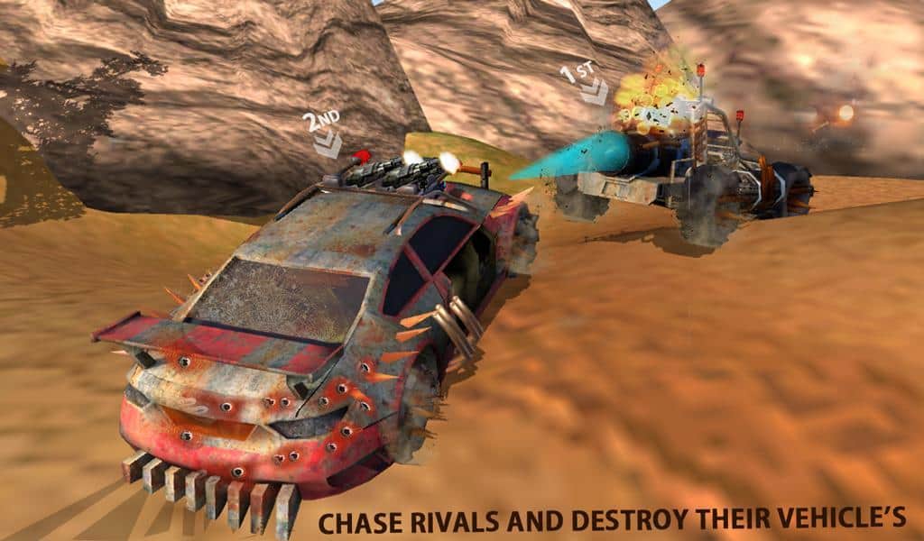 Buggy Araba Yarışı: Ölüm Yarışı – bu Android oyununda tehlikeli ve dinamik yarışlara katılın. Bu oyunda, roket rampaları ve ağır makineli tüfek ile donatılmış zırhlı bir aracın direksiyonuna geçeceksiniz. Rakiplerinizle birlikte çöl ve ıssız bölgelerde aracınızla gezinin. Rakiplerinizi takip edin ve tek bir atışla onların araçlarını vurun, onlara zafer şansı vermeyin. Yüksek hızda rakip araçlarına çarpın ve onları uçurumdan atın. Off-road yapın ve çok sayıda engel ve düşman ateşiyle çarpışmalardan kaçının. Yeni araçlar ve modern silahlar keşfedin.