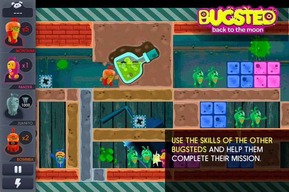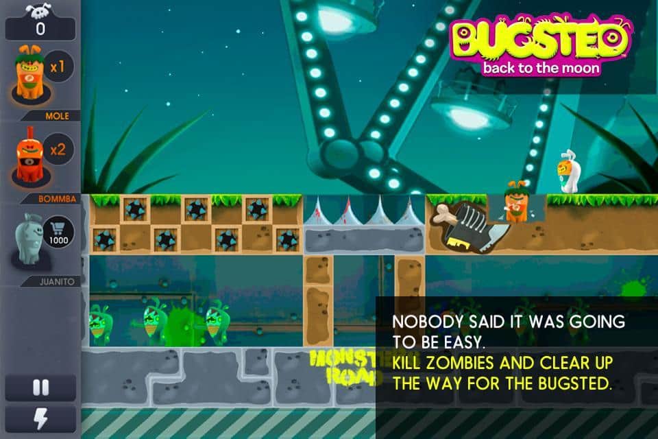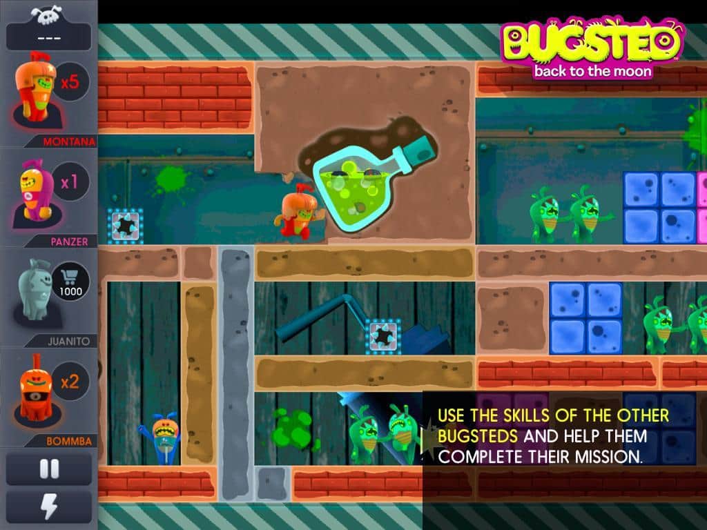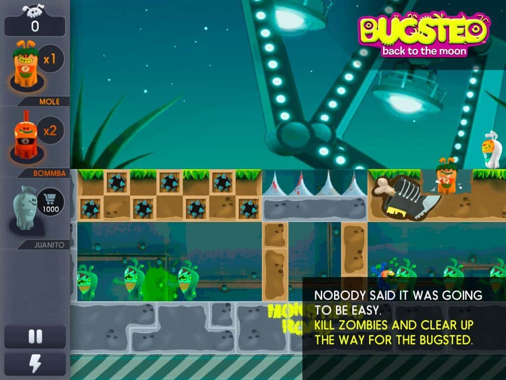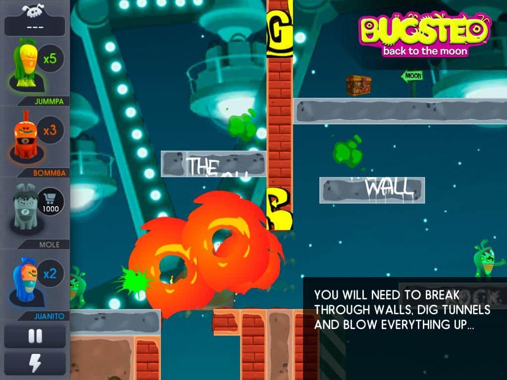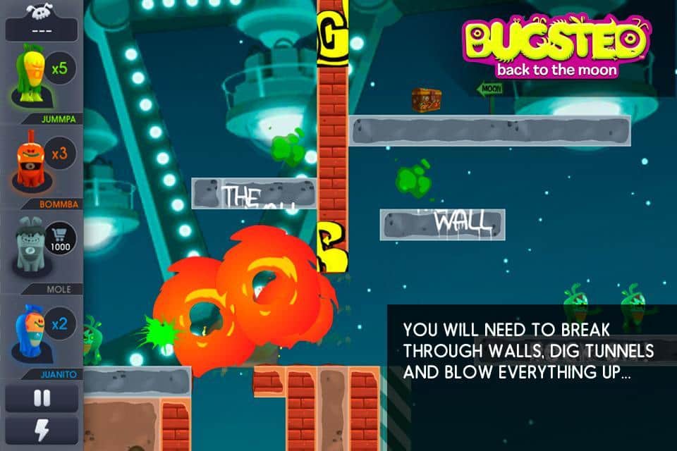 Bugsted - Ay'a Dönüş - android için bir oyun, burada komik uzaylılar tesadüfen Dünya gezegenine düşüyor ve şimdi her yol ile evlerine dönmeye çalışıyorlar. Onlara bu konuda yardım edin, bunun için duvarları aşmak, tüneller kazmak ve önlerindeki her şeyi patlatmak gerekecek. Ama her şey yok edilemez, bu yüzden onları doğru yönde evlerine götürmek için tüm hayal gücünüzü kullanmanız gerekecek, 100 heyecan verici seviyeden geçerken.