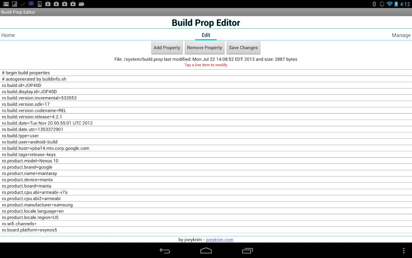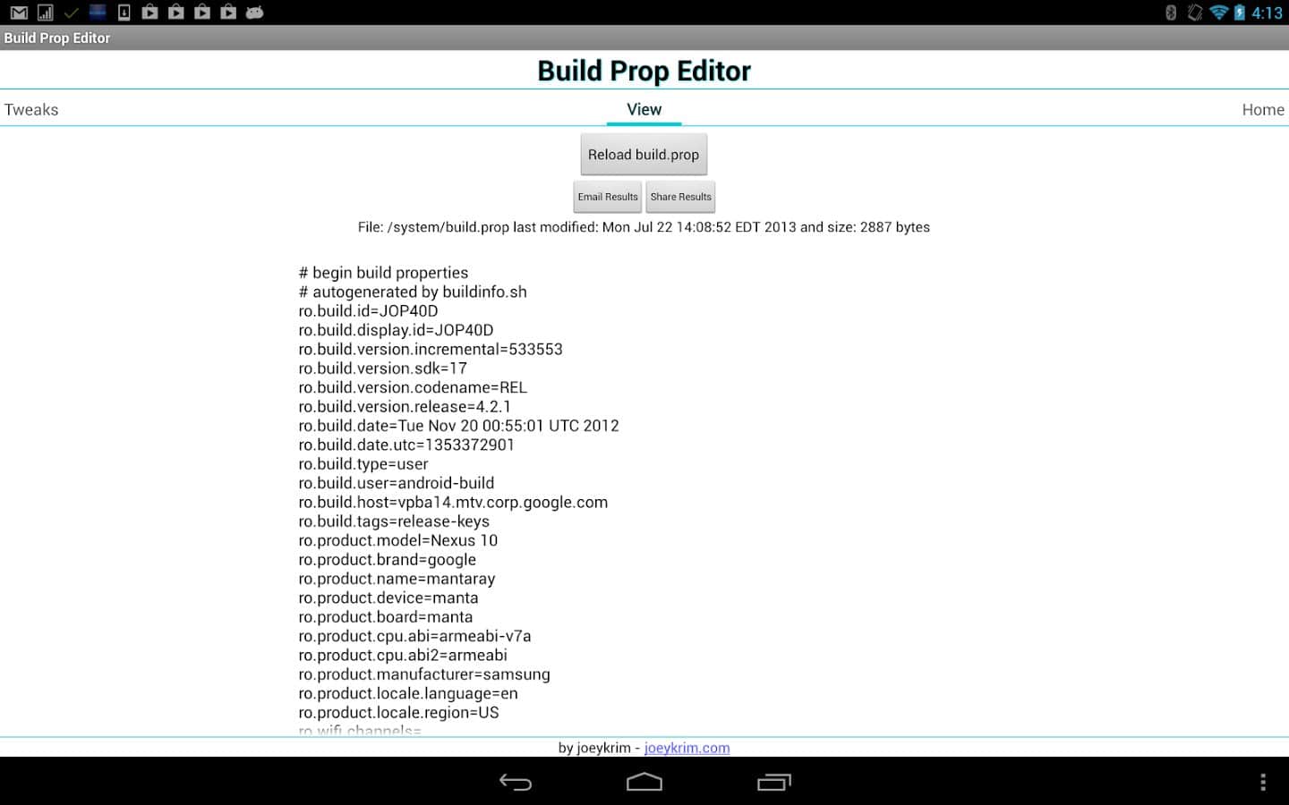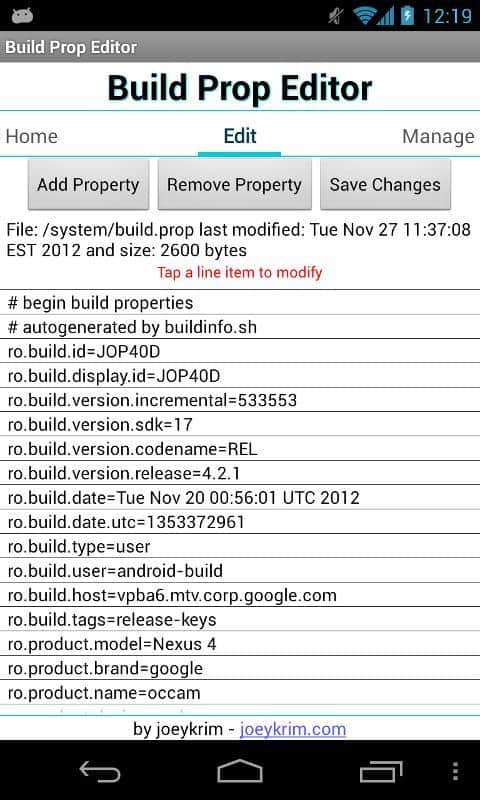 Yapı Prop Düzenleyici – Android için harika bir uygulama, bu sayede dosya değerlerini değiştirebilir, bilgileri görüntüleyebilir ve yeni parametreler ekleyebilirsiniz. Nasıl çalışır: Uygulamayı başlattıktan sonra, build.prop dosyasında bulunan parametrelerin bir listesini göreceksiniz, bunlardan herhangi birini seçerek değerini değiştirebilirsiniz. Tavsiye - işe başlamadan önce mevcut build.prop dosyasının yedeğini alın, çünkü dosyalarla yapılan deneyler sisteme olumsuz etkide bulunabilir.