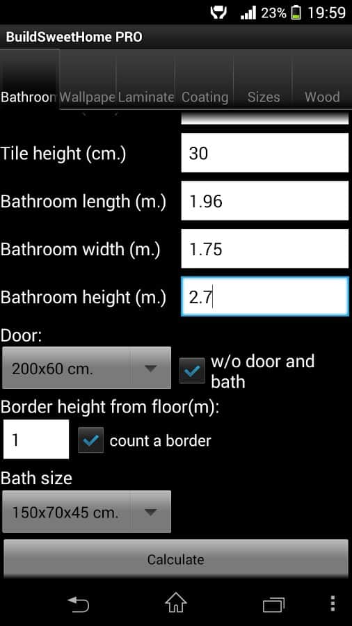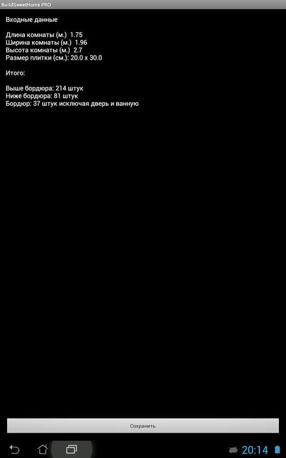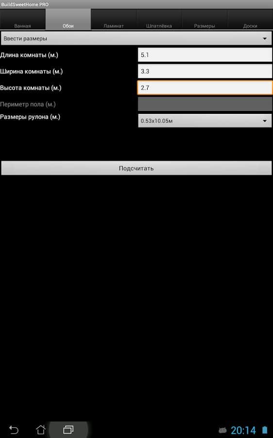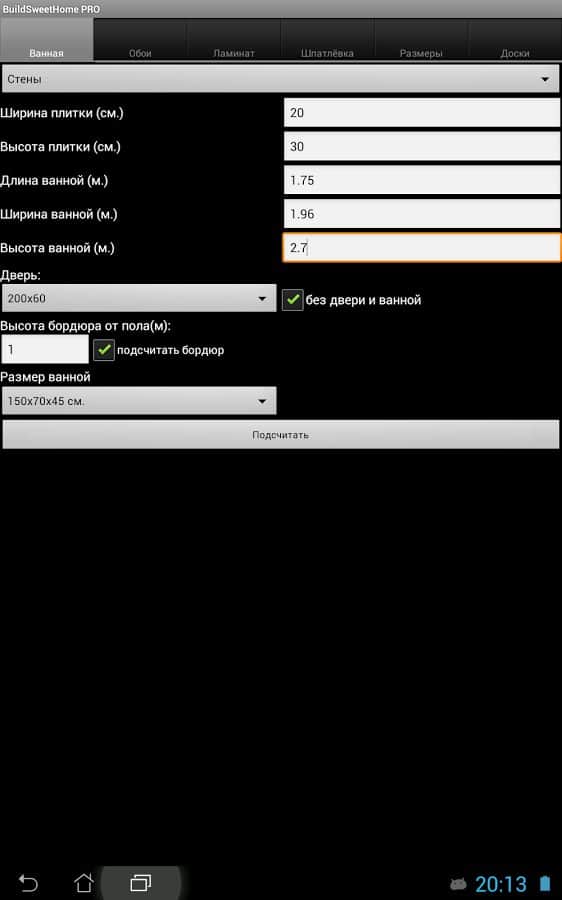 BuildSweetHome - Android için faydalı bir program, bir tür inşaat malzemeleri hesaplayıcısı. Yenileme yapan herkes için vazgeçilmez bir program - müteahhitlerden siparişçilere kadar. Gerekli malzeme miktarını hesaplayabileceksiniz - seramik karolar, laminat, duvar kağıtları, tahtalar vb. Ayrıca, bir odada kullanılan 2 farklı malzemenin miktarını hesaplama imkanı da bulunmaktadır; örneğin, banyoda 2 farklı renk karoya. Ayrıca, elde edilen sonuçları kaydetme imkanı ile birlikte birçok diğer faydalı hesaplama da mevcuttur.