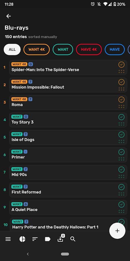 - İsim, alfabeye, etiketlere göre sıralama;