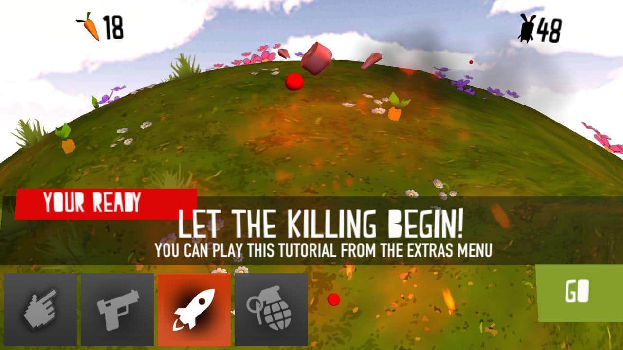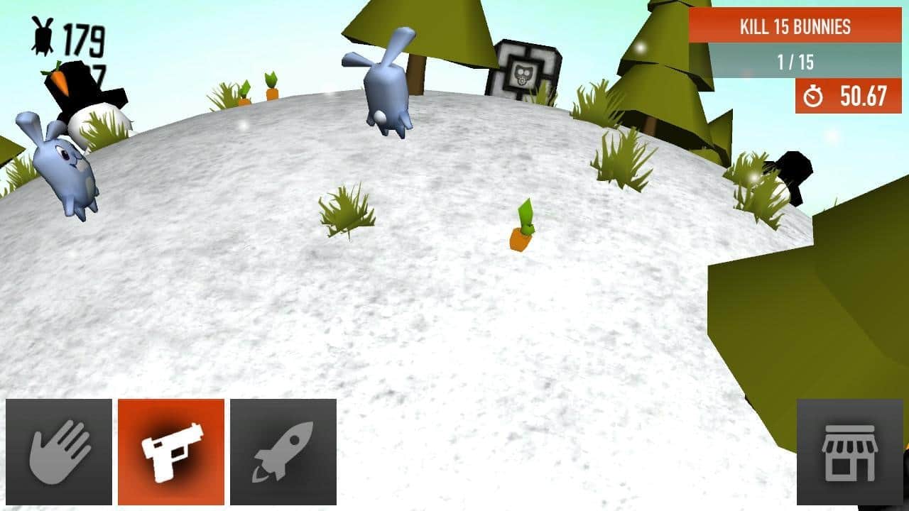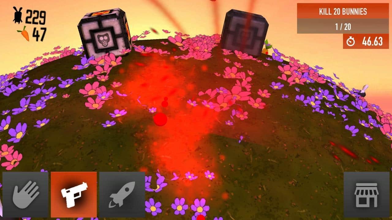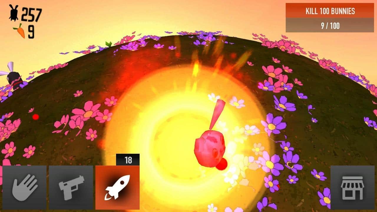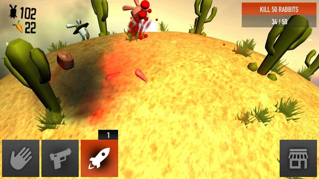 Tavşan Katili - Android için bir oyun, burada mümkün olduğunca çok sevimli tavşanı öldürmeniz gerekiyor. Bunun için çeşitli silahlar, el bombaları ve roket rampaları kullanın, böylece eğlenceli olacak. Tavşanları öldürün, puan kazanın, bonuslar toplayın ve yeni silah türlerini açma şansına sahip olun. Cihazınızın eğimleriyle kolay kontroller ve canlı grafiklerin keyfini çıkarın.
