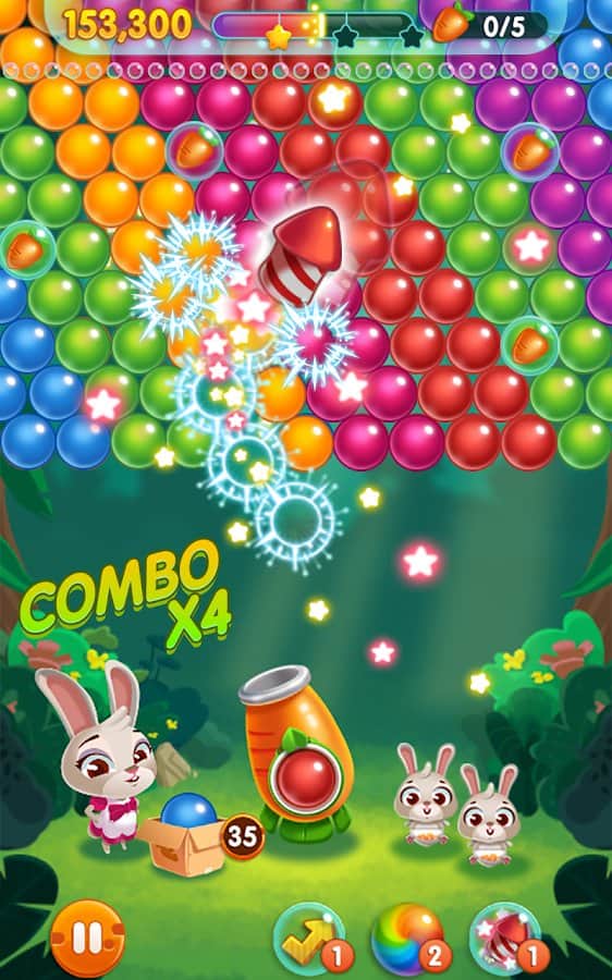 Tavşan Patlat – Android için eğlenceli bir baloncuk atıcı, burada tavşanların tuzaktan kurtulmalarına yardım edeceksiniz. Tavşanlarımız kötü kurtlar tarafından yakalandı ve şimdi anne tavşana, tepede bulunan baloncuk kümesine renkli baloncuklar fırlatarak yavrularını kurtarmasına yardımcı olma görevi veriliyor. Renkleri aynı olan baloncukları üç veya daha fazla sıraya birleştirerek patlatın. Baloncukları mümkün olduğunca hızlı patlatmaya çalışın ve seviyeyi geçerek birçok bonus ve güçlendirme kazanın. Oyunda zaman sınırlaması olmayan 200'den fazla eşsiz seviye, birçok baloncuk ve görev bulunmaktadır. Tüm tavşanları kurtarın.