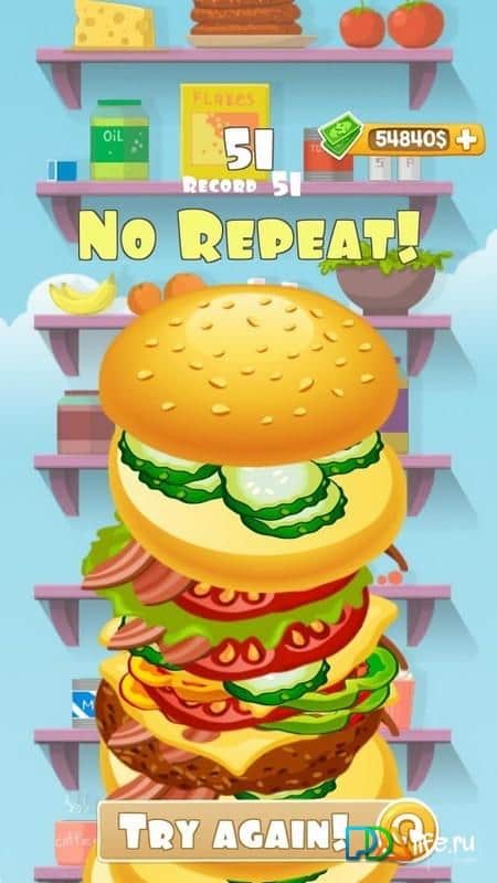 Burger Cafe “No Repeat” 2 – lezzetli sandviçler, hamburgerler, tatlılar ve diğer atıştırmalıkları hızlı bir şekilde nasıl yapacağınızı öğrenebileceğiniz bir burger kafeye hoş geldiniz. En yüksek cheeseburgeri yapın. Harika lezzetli bir hamburger yaratmak için hamburger ekmekleri, peynir, baharatlar, soslar ve diğer gerekli malzemeleri kullanın.