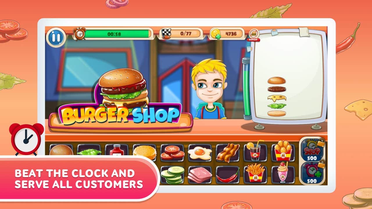 Burger Dükkanı - en iyi yemek oyunu – Android için bir oyun, burada restoranı yönetecek ve aç müşteriler için çeşitli burgerler hazırlayacaksınız. Restoranın şef aşçısı rolünü üstlenin ve çeşitli yemekler hazırlayın ve müşterilerinizi taze malzemelerle farklı yemeklerle mutlu edin. Ana göreviniz yemekleri mümkün olan en hızlı şekilde hazırlamak ve müşterilerinizi siparişlerini bekletmeden memnun tutmak, aksi takdirde memnun kalmayacaklar ve bahşiş bırakmayacaklar. İşinizi geliştirin ve genişletin ve ziyaretçilerinizin kesinlikle seveceği yeni tarifler oluşturun.