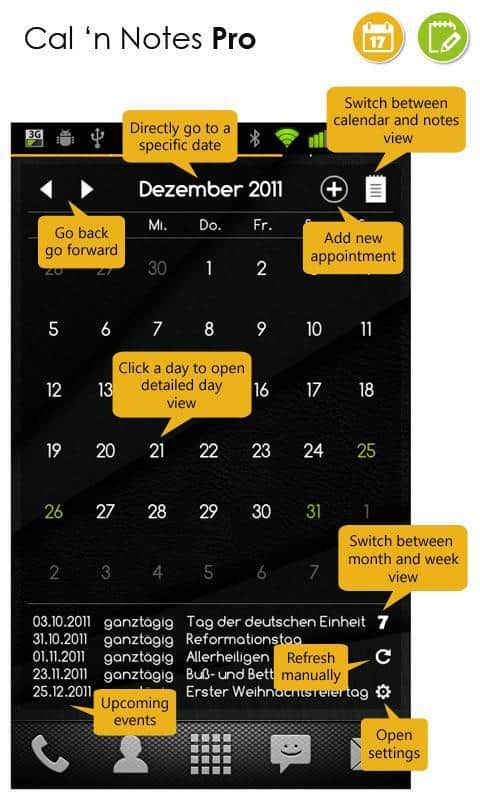 Yorumlar ile Calendar Widget+Status üzerinde Android