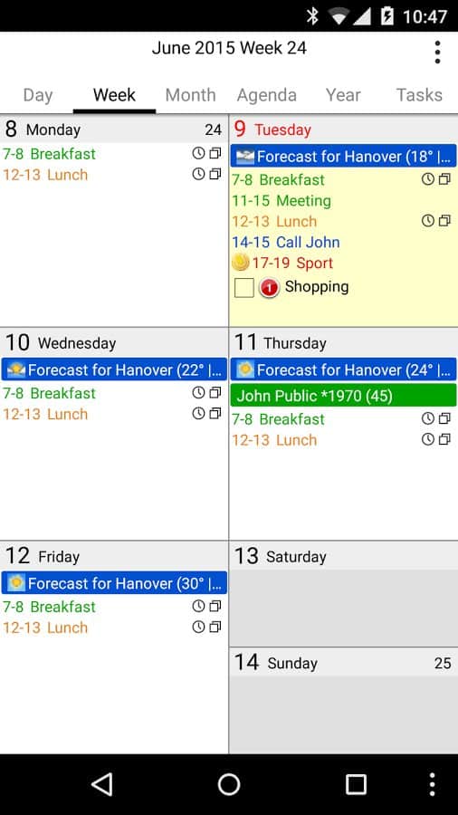 CalenGoo - Takvim ve Görevler - Günlük işlerinizin takibini yapmak için basit ve kullanışlı bir uygulama. Burada notlar bırakabilir ve yapacaklarınızı kaydedebilirsiniz. Kullanışlı takvim ve birçok filtre, bu uygulama ile çalışmayı oldukça kolaylaştırmaktadır. Notun rengini önemine göre seçebilir veya sadece belirli kategorilere ayırmak için kullanabilirsiniz. Ayrıca, tüm notları aynı anda görebilir veya takvimde belirli bir tarihi seçebilirsiniz. Bu uygulamanın güzel ve basit tasarımı herkesi mutlu edecektir.