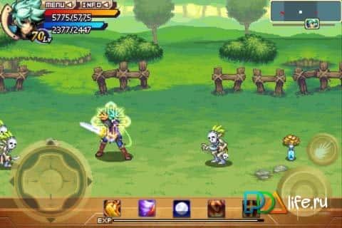 Tüm türün özellikleri mevcut - envanter, hikaye kesitleri, kombine saldırılar, geliştirme, geliştirme ve bir kez daha geliştirme. Kontrol, her zamanki gibi sanal joystick, butonlar ve yeteneklerinizi yerleştirebileceğiniz 4 slot ile sağlanıyor.