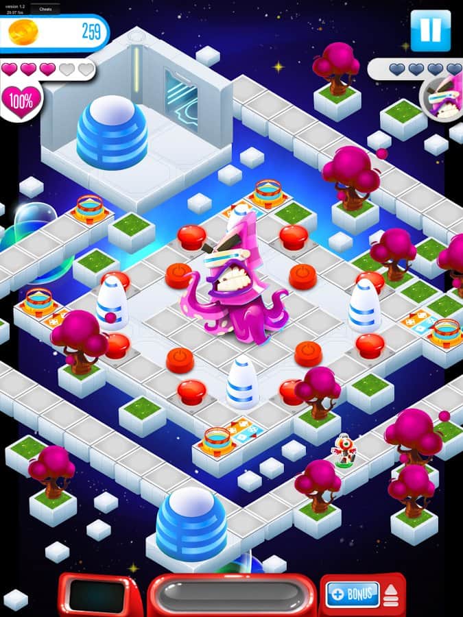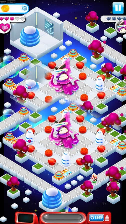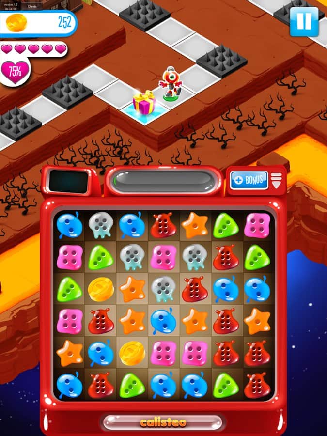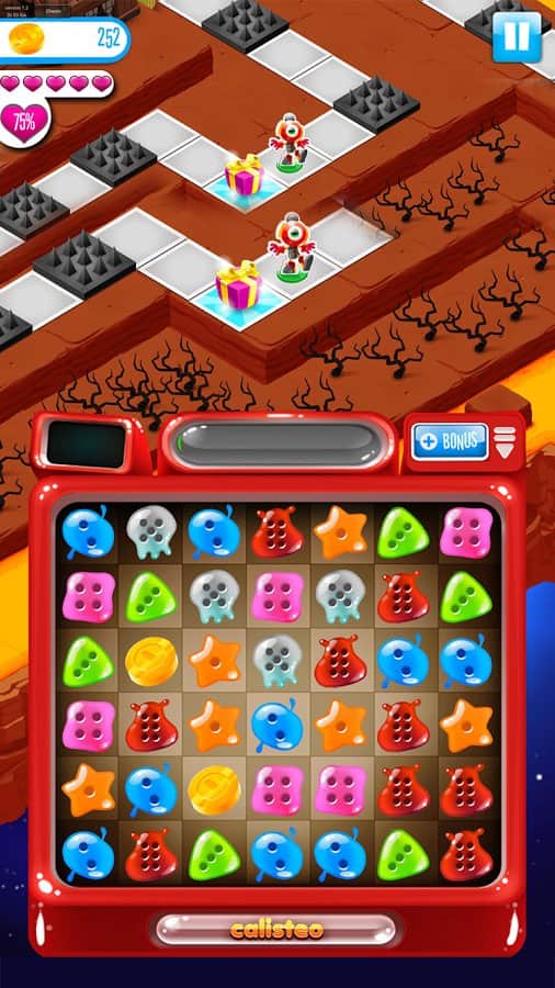 Calisteo, Android için bir üçlü eşleştirme türünde heyecan verici bir oyundur; burada robotun hareketini yönlendireceksiniz ve üç aynı nesneyi bir araya getirerek sıralayacaksınız. Üç veya daha fazla nesneyi bir araya getirerek bir zincir oluşturun ve karakterinize yoluna devam etmesi için ekstra enerji verin. Kareler üzerinde hareket edin ve yolunuzdaki tüm engelleri ve tuzakları aşın. Verilen görevleri mümkün olan en hızlı şekilde tamamlayın ve yeterli puanı toplayın. Yol boyunca, seviyeleri daha hızlı geçmenize ve liderlik tablosunun en üstüne çıkmanıza yardımcı olacak çeşitli bonuslar ve güçlendirmeler toplayın.