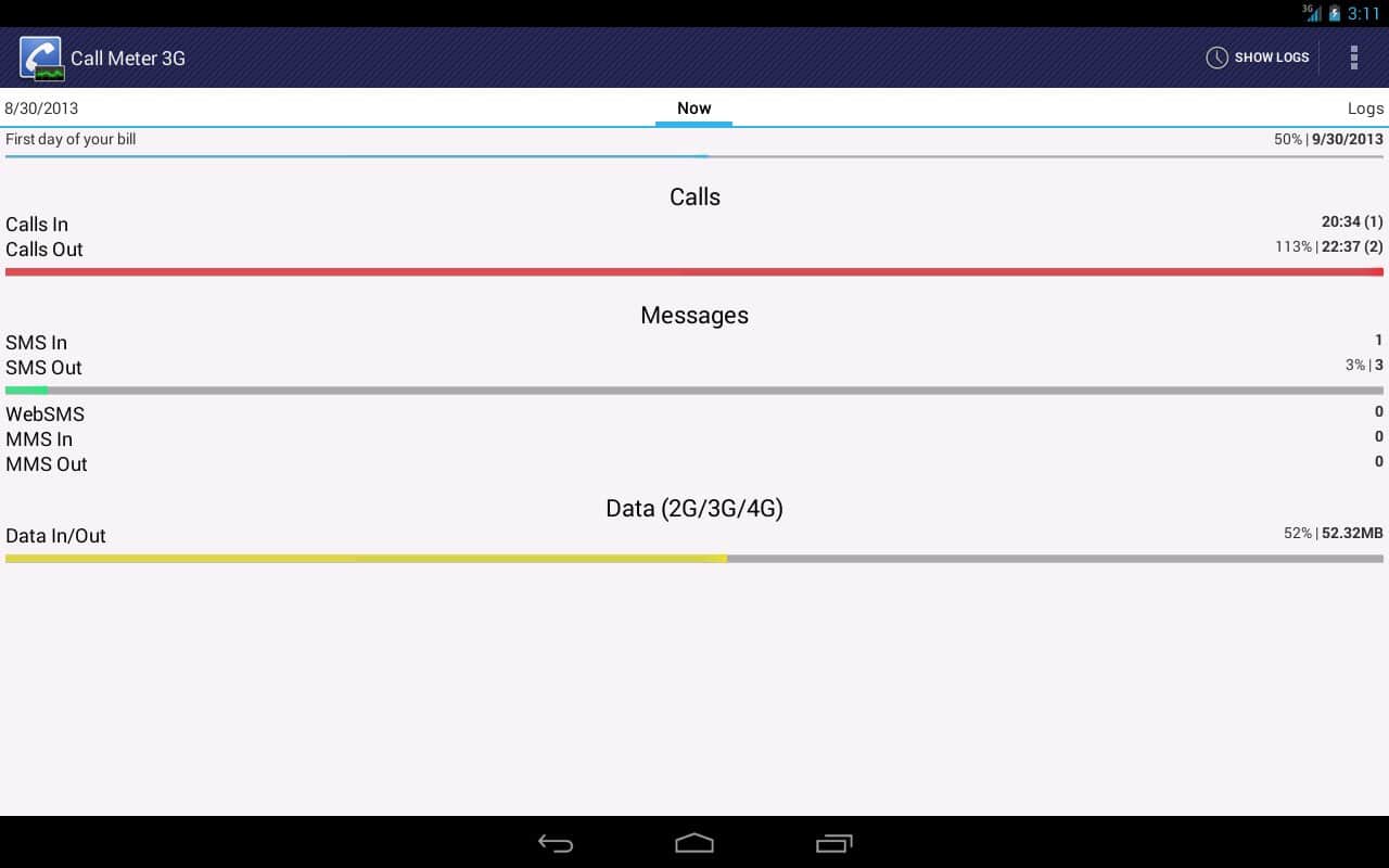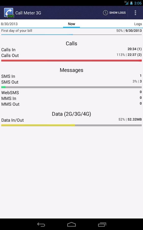 Uygulama, 2G, 3G ve 4G ağları üzerinden verileri takip etmenizi sağlar, ancak Wi-Fi'yi saymaz. Ayrıca, gönderilen SMS, MMS ve çıkış aramaları süresi de hesaplanır. Geniş ayar seçenekleri sayesinde, Call Meter 3G çok esnek bir uygulamadır; limitler belirleyebilir, belirlenen limitlerin aşılması konusunda bildirimler alabilir, belirli aramaları ve mesajları sayım dışı bırakabilirsiniz ve tüm yararlı bilgileri akıllı telefon ekranında widget olarak görüntüleyebilirsiniz. Ne yazık ki, geniş işlevselliği nedeniyle çok büyük ve her zaman anlaşılır olmayan bir ayar sayısıyla karşılaşıyorsunuz. Ancak endişelenmeyin, istenildiğinde bunlarla başa çıkmak o kadar da zor değildir.