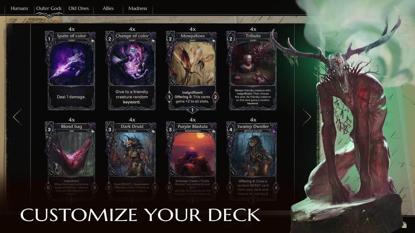 Efsane Çağrısı: Koleksiyon Kart Oyunu - Hangi tarafı seçeceksiniz: İnsanlığın Koruyucusu mu yoksa Çılgın Korkular mı? Oyunda karşınıza çıkan benzersiz yeteneklere sahip kartlarla, kazanmak için net stratejiler geliştirin. Sağlık barınızın yanı sıra akıl sağlığı durumunuz olduğunu unutmayın. İkinci bar 0'a düşerse, varlığınızın akıl sağlığını kaybetme ihtimali vardır. Harika karakterleri bir araya getirmeyi öğrenin ve her durumda nasıl hareket edeceğinizi düşünerek zamanında kararlı adımlar atın.