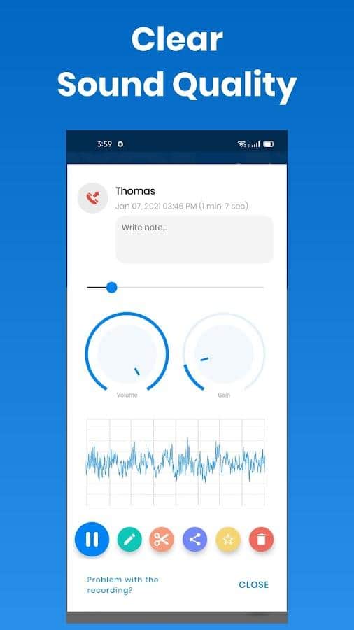 Telefonunuzda yapılan tüm sesli görüşmeleri kaydedin! Gelen bir çağrı alıyor olun ya da kendiniz bir arama yapıyor olun, uygulama otomatik olarak devreye girer ve çağrının başından itibaren tüm görüşmeyi kaydeder. Uygulama sayesinde sadece telefon görüşmelerinin kaydını almakla kalmaz, aynı zamanda ses kaydedici olarak kullanabilir, herhangi bir sosyal ağdan veya mesajlaşma uygulamasından ses kaydedebilir, video toplantıları kaydedebilir, kendi sesinizi değiştirebilir ve hatta kaydedilmiş ses kaydını kesebilirsiniz.