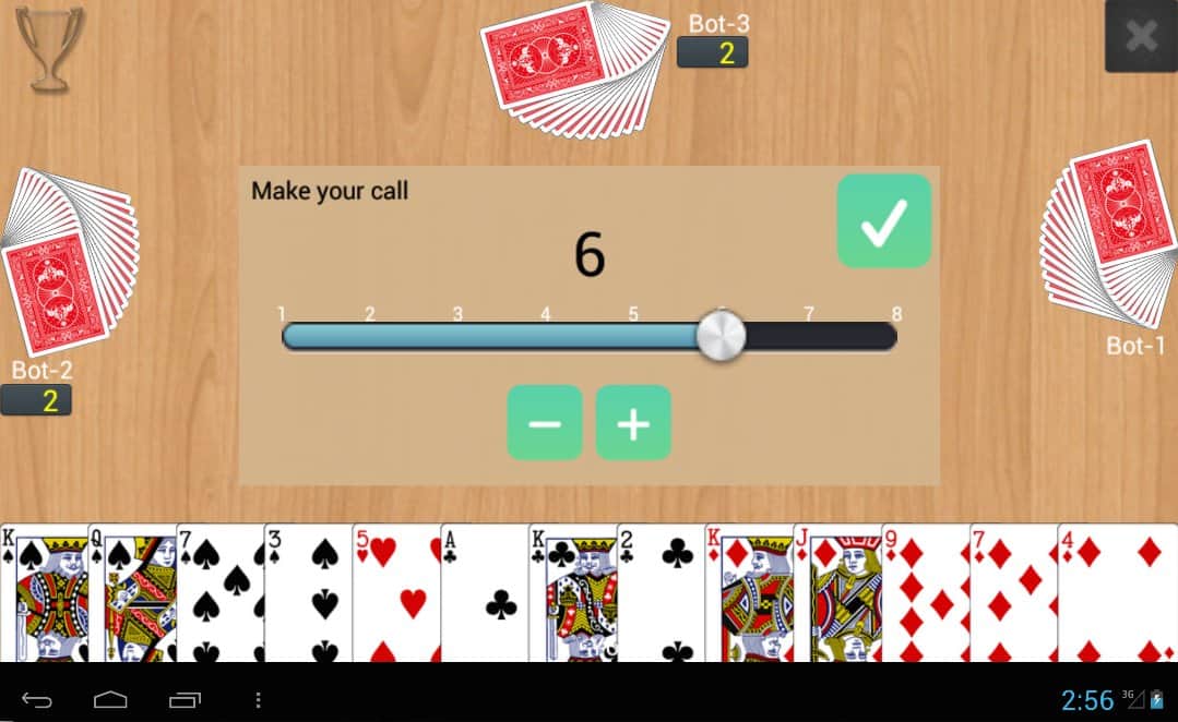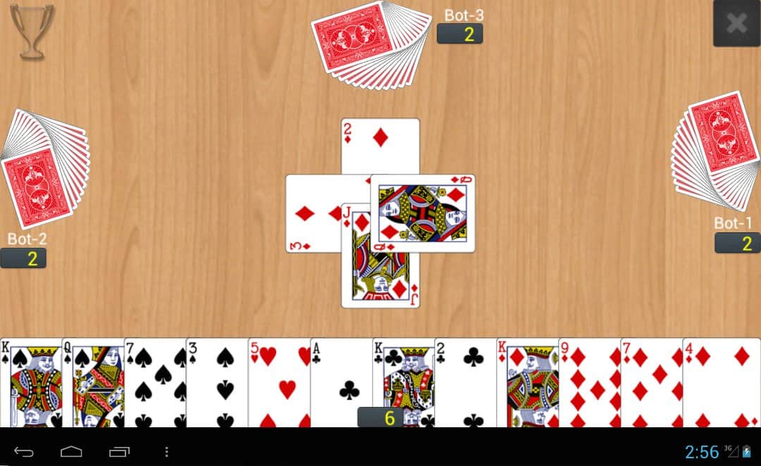 Callbreak Çoklu Oyuncu – dünyadaki oyuncularla veya arkadaşlarınızla oynayabileceğiniz bir Android kart oyunudur. Oyun, her oyuncuya 52 kartlık desteden belirli bir sayıda kart dağıtılarak başlar. Bu oyunda aynı anda dört kişi oynayabilir, her oyuncu desteden bir kart alır ve masanın üzerine koyar. Bu oyundaki ana amacınız, tüm kartları rakiplerinizden daha hızlı bir şekilde elden çıkarmak ve turu kazanmaktır. Zor durumlarda atouts kullanın ve zaferinize giden yolu açın.