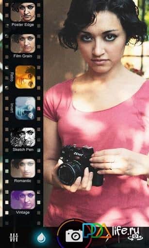 Camera Plus – ilginç efektlerle dolu bir başka Android kamerası, harika fotoğraflar elde etmek için. Yapmanız gereken tek şey, birçok efekt arasından birini seçmek ve çekime başlamak.