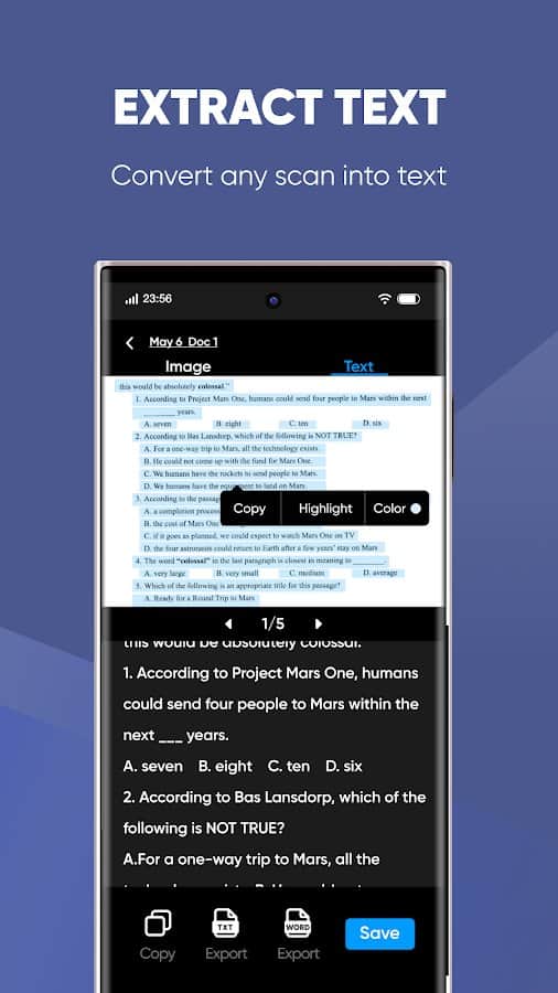 Kamera Tarayıcı - PDF Tarayıcı - Belgeleri tarayın ve metni tanımak için OCR işlevini kullanarak kaydedin. Uygulama, anahtar kelimelere göre arama yapmanıza ve metni düzenlemenize olanak tanır. Otomatik kırpma ve görüntü kalitesini artırma ile, tüm belgeleri kolayca tarayabilirsiniz. Ayrıca, isterseniz taranmış belgelere su işaretleri ekleyerek koruma sağlayabilirsiniz. Bu araç, istediğiniz zaman ve yerde hızlı bir şekilde tarama yapmanızı sağlayan güçlü bir yardımcıdır.