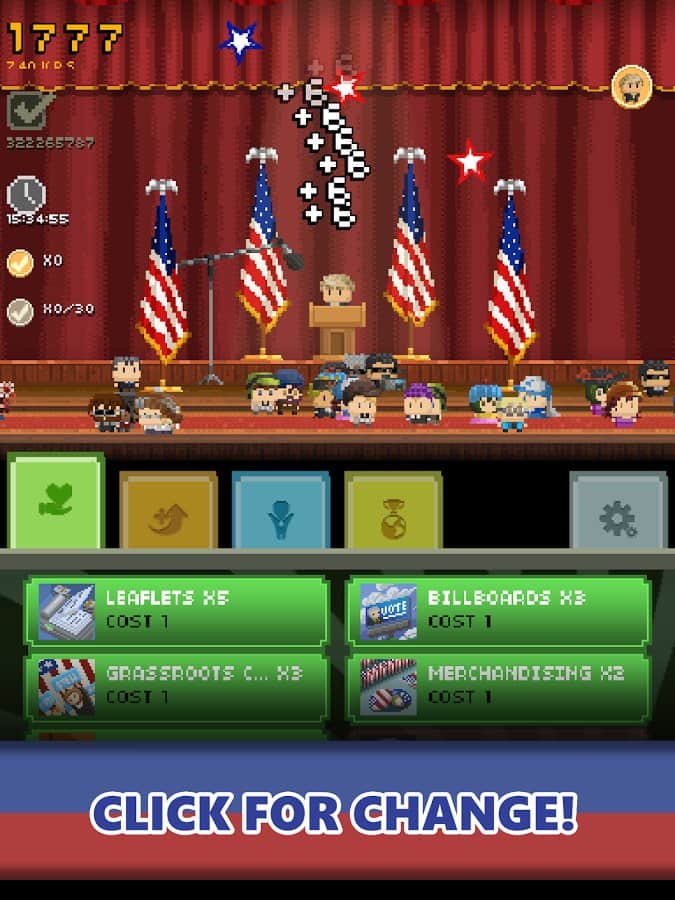 Kampanya Tıklayıcı - Oldukça eğlenceli ve alışılmadık bir tıklayıcı, burada adayınızı başkan olarak desteklemeniz gerekiyor. Dünyanın en ünlü insanlarına parodiler de yer alıyor. Göreviniz oldukça basit, tıklıyorsunuz ve paralar kazanıyorsunuz, çeşitli para toplama kampanyaları düzenliyorsunuz veya yüksek bir demokrasi seviyesinden bahsedebilirsiniz. Bir bakıma oyun mizahi bir şekilde ve alaycı bir üslupla yapılmış, modern dünya politikasını biraz da olsa alay konusu ediyor, ancak bu sadece bir oyun ve genel olarak oldukça iyi ve eğlenceli bir tıklayıcı.