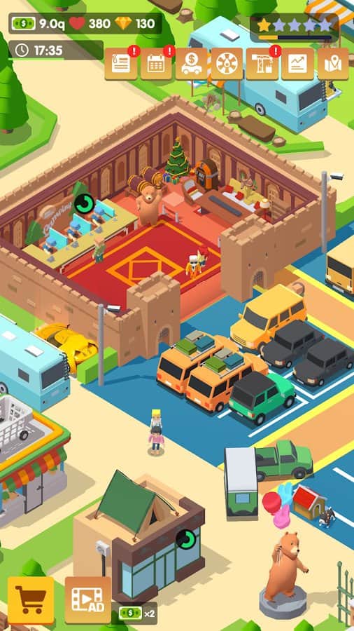 Kamp Yeri Tycoon - Kamp, dünyadaki en popüler açık hava dinlenme alanlarından biridir. İnsanlar, kamp için gerekli eşyalar için yılda büyük miktarda para harcıyor. Girişimciler için çadır alanı açmak karlı bir iş olacakken, turistler için günlük koşuşturmacadan uzaklaşmak ve doğaya gitmek için iyi bir fırsattır. Kamp işletmeniz için ücret belirleyin: hediyelik eşya dükkanının girişindeki park alanında ve parkın dışında, kamp alanının tamamında ücret alabilirsiniz.