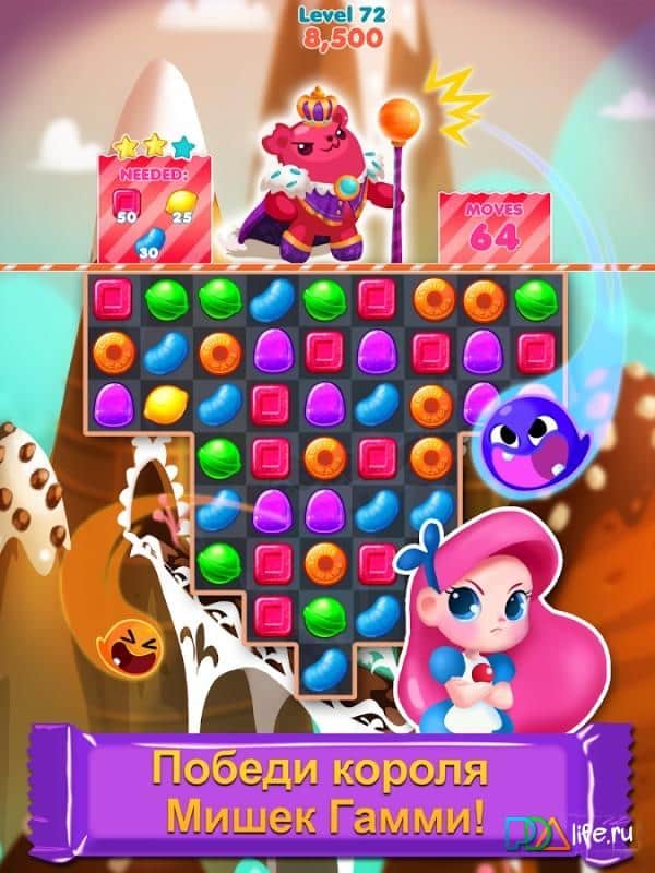 Şeker Patlama Çılgınlığı: Seyahat – sizi şekerlerden oluşan masalsı bir dünyaya götüren eğlenceli bir Android oyunu. Kötü kral, jelibon ayı krallığını yönetiyor ve tüm dünyayı ele geçirdi, tüm şekerleri almak istiyor, buna izin vermeyin. Aynı renkten üç veya daha fazla şekeri bir araya getirip patlatın, renkli patlamaların ve özel efektlerin tadını çıkarın. Masalsı ülkede seyahat edin, şekerlerden zincirleme reaksiyonlar başlatın ve kombinasyon darbeleri yapın. Tamamladığınız görevler için puan kazanın ve ödül olarak harika güçlendirmeler ve bonuslar alın. Bu oyunda kendi rekorlarınızı belirleyin ve liderlik tablosunun en üstüne çıkın.