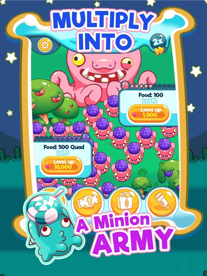 Şeker Minyon - Tembel Tıklayıcı, Android için bir tıklayıcı oyunu, burada bir minyon takımı toplayacak ve şeker toplayacaksınız. Bu oyundaki ana görev, ana minyonun güçlü açlığını yenmek olacak; onu lezzetli şekerler, kurabiyeler ve diğer atıştırmalıklarla beslemek gerekiyor. Minyon takımınızı şeker evine gönderin ve daha fazla tatlı getirin. Telefon ekranınıza mümkün olduğunca hızlı tıklayın ve şekerleri toplayın, ayrıca minyonlarınızı geliştirmeyi ve yeni ikramlar ile ödüller açmayı unutmayın. Yeni oyun senaryolarını açın ve mümkün olduğunca fazla şeker tüketin. Aynı anda 12 minyonu yönetin ve harika bir maceranın tadını çıkarın.