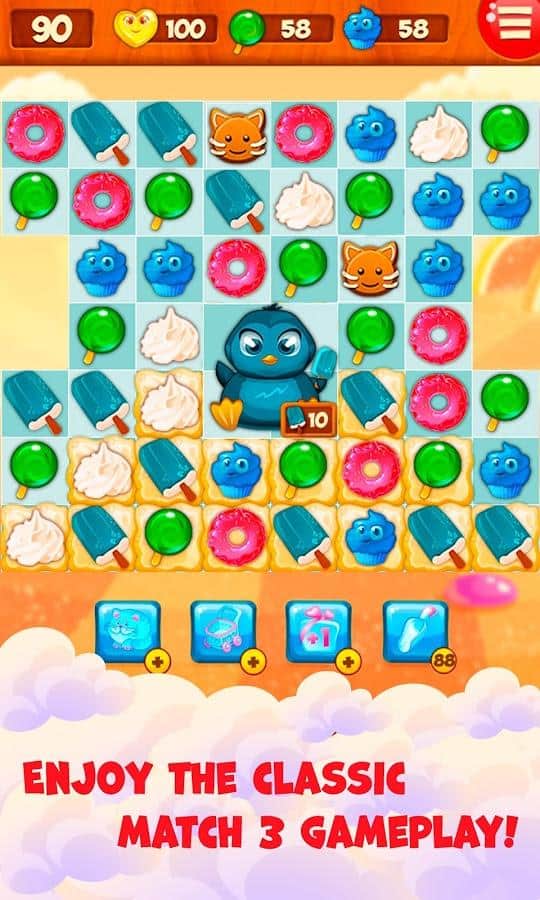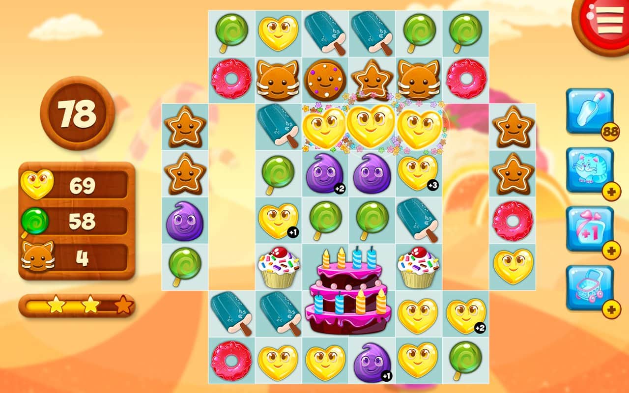 Şeker Vadisi – eğer tatlı düşünceler aklınızı sarıyorsa. O halde oyunu kurun ve ‘üçlü eşleştirme’ türündeki klasik bir oyunla eğlenin. Tüm Şeker Vadisi'nin en iyi şefleri olan Eduard ve sadık yardımcısı Ella ile birlikte en lezzetli tatlı tariflerini toplamak için yola çıkıyoruz. Bu türdeki diğer tüm oyunlarda olduğu gibi, aynı üç öğeyi bir çizgide birleştirmeniz gerekiyor ve ardından bunlar oyun alanından kaybolacak, bu da size ekstra puan kazandıracak. Renkli gökkuşağı, sizi bir parlak seviyeden diğerine geçmenizi sağlayacak. İyi eğlenceler!