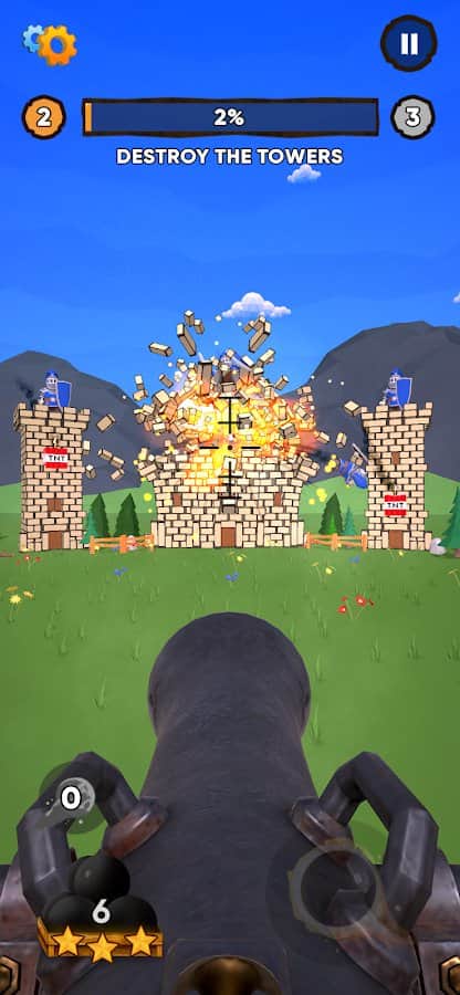 Topları ustaca kullanarak ve doğru atış yapmayı öğrenerek birçok krallığı yok etmeye hazır mısınız? Binaları minimum atışla devirmek için en savunmasız noktaları hedef alın. Her seferinde hedefi yok etmek daha zor hale gelecek, bu yüzden önceki savaşlardan kazandığınız paralarla topunuzu tüm özel özellikleriyle geliştirin ve top çeşitlerini değiştirin. Yapılar farklı lokasyonlarda bulunmaktadır ve farklı görünümlere sahiptir, her zaman aynı atışı kullanarak farklı kaleleri yıkmak mümkün olmayabilir, atışın yönü önemlidir.