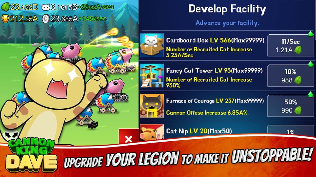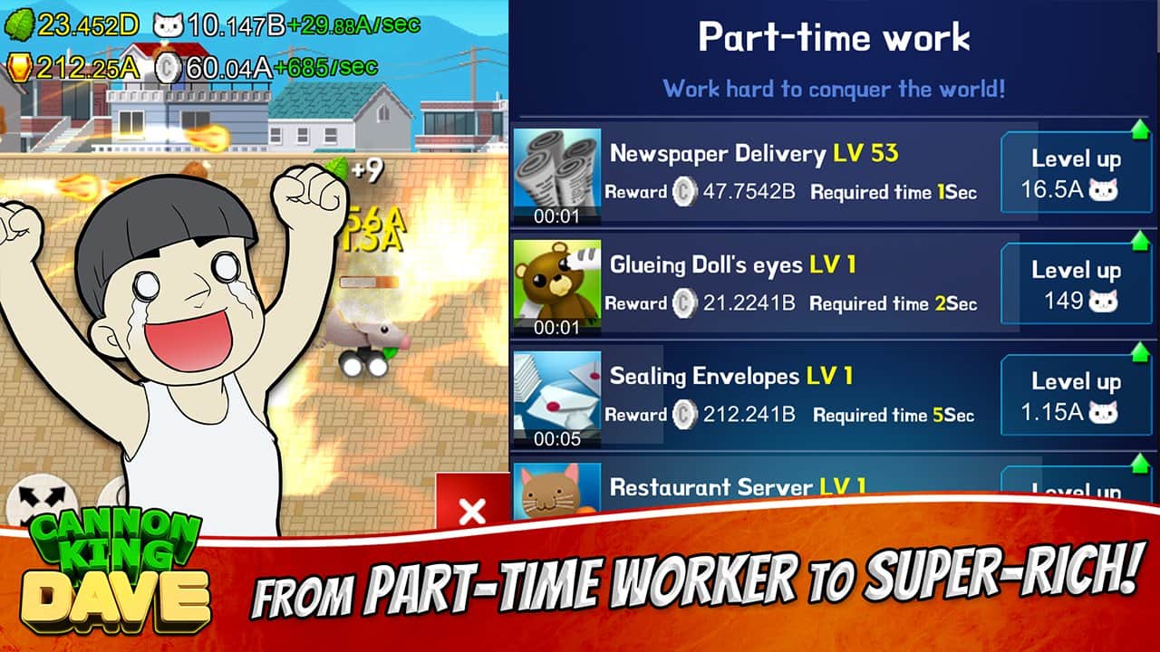 Topçu Kral Dave, Android için ilgi çekici bir oyundur; burada çeşitli toplar inşa edecek ve bunlarla dünyayı ele geçirmeye çalışacaksınız. Bu oyunda, Dave adındaki kedinin çeşitli toplar inşa etmesine yardımcı olacak ve devasa bir topçu ordusu toplayarak düşmanlarınızı yok edip dünyada gücü ele geçireceksiniz. Küçükten başlayın ve önce çevredeki bölgeleri ele geçirip daha da ileri gidin, şehirleri ve tüm kıtaları fethedin. Daha fazla top inşa edin ve ateş gücünü artırarak düşmanlarınıza şans tanımayın. Oyunda birçok eğlenceli karakter, çok sayıda top ve seviye bulunmaktadır.