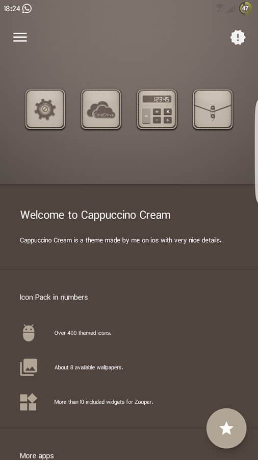 Kahve Kreması - Masaüstünüz için güzel simgeler ve duvar kağıtları. Bu simgelerin ve duvar kağıtlarının kahve tarzı, kahve sevenler ve onun stilini sevenlere hitap edecek. Tüm simgeler tek renkli koyu bir tarzda yapılmış ve oldukça şık görünüyor. Ayrıca bu uygulama, çoğu modern başlatıcıda desteklenmektedir, bu yüzden çalıştırmakta sorun yaşamayacaksınız.