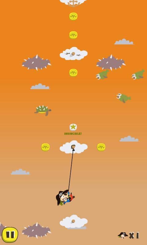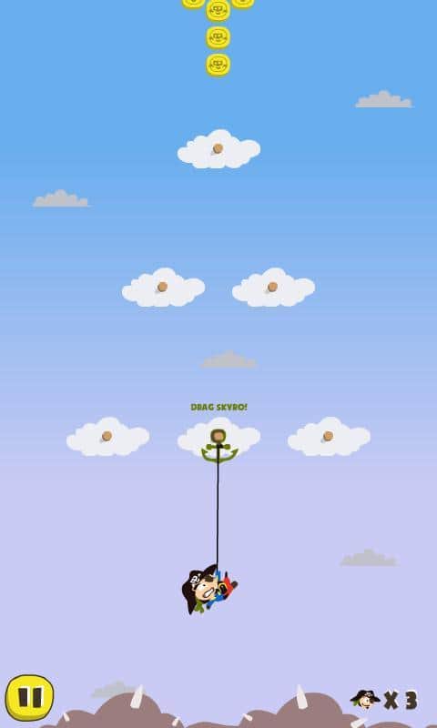 Kaptan Skyro, gemisini geri almak isteyen korsan kaptanıdır! Cesur korsana ulaşması için yardım edin. Kancayı bulutlara takarak, daha yükseğe çıkın, yol boyunca hazineleri toplayın ve seviye bosslarıyla savaşın. Kaptanımız sadece kancayı takmakla kalmaz, aynı zamanda onu bir harpun gibi fırlatabilir. Bulutlara tutunacak ve kahramanı bir sapan gibi çekerek korsanı yukarı fırlatacaksınız. Atlayış açısını ve kancanın gerilimini ayarlama imkanınız var. Yolunuzda aşmanız gereken bir çok hareketli ve hareketsiz engelle karşılaşacaksınız. Her şeyi başarabilirsiniz, sadece kancanın gücüne ve korsanın şansına inanmalısınız. İşte, önünüzde 40 seviyeden oluşan eğlenceli bir arcade var!