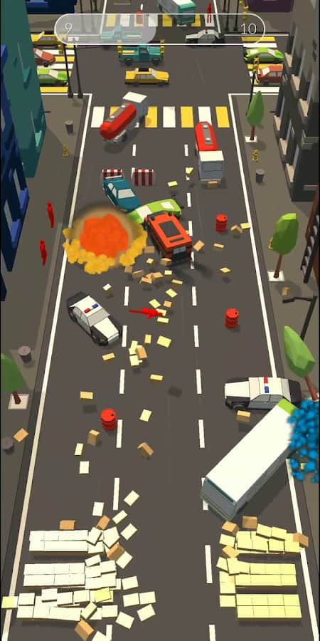 Araba Çarpması: Smashy Road 3D'deki Büyük Vuruş - üç boyutlu bir araba arcade oyunu, burada direksiyonun başına geçip şehrin sokaklarına çıkarak gerçek bir kaos yaratmanız gerekecek. Bu arada, sokakların her yerinin polisiyle dolu olduğunu ve her türlü şekilde size engel olmaya çalışacaklarını unutmamalısınız. Ayrıca, kırmızı renkteki yayalar da tehlike oluşturuyor. Başka hiçbir şey sizi durduramaz, zira tamamen etkileşimli bir dünyayı yerle bir edebilirsiniz. Şık poligonal grafikler, genel tasarımla mükemmel bir şekilde uyum sağlıyor.