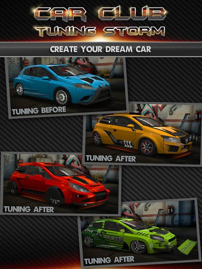 Araba Kulübü: Tuning Fırtınası – tahmin ettiğiniz gibi, bu Android oyununda size aracınızı modifiye etme fırsatı verilecek. Ve sadece modifiye değil! Geliştiricinin iddiasına göre, bu oyunda tüm oyunlardan daha fazla modifikasyon mevcut! Dikkatinize sunulan tamamen 3D araçlar, tüm olası değişikliklerle birlikte. Ve bunlarla gerçek sokak drag pistlerinde yarışacaksınız. Aracınızı bir 'kurşun' haline getirin ve drag'ın kralı olun!