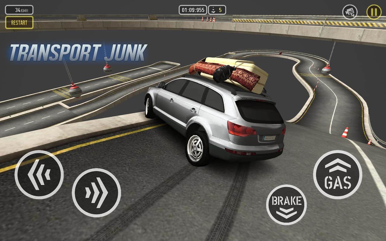 Araba Sürüşü AT - Kendinizi gerçek bir sürücü gibi deneyin! Çünkü bu Android oyununda akrobasi yapacak ve çeşitli görevleri yerine getireceksiniz. Parkuru en az harcanan süreyle geçin. Üzerinde koniler ve hareket eden nesneler ile bariyerler var - hangi yönde açılacağını asla bilemeyeceksiniz.