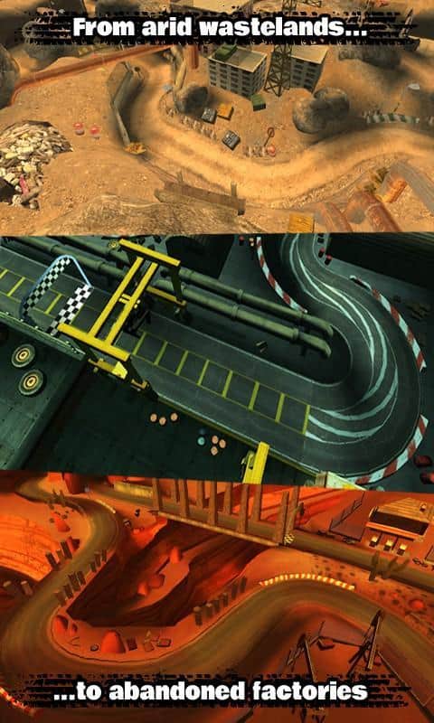 5 harika tasarlanmış pist: tozlu çöl, terkedilmiş fabrika, vahşi banliyö, yıkık tersane ve dağ sırası + ayrıca açılabilir 6. pist,