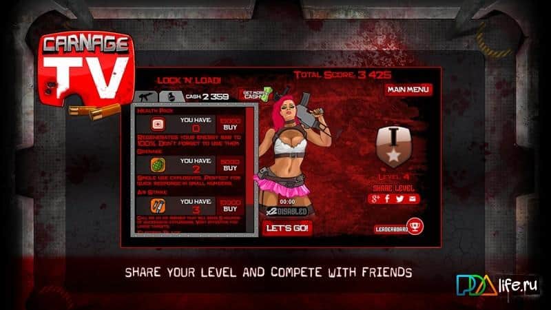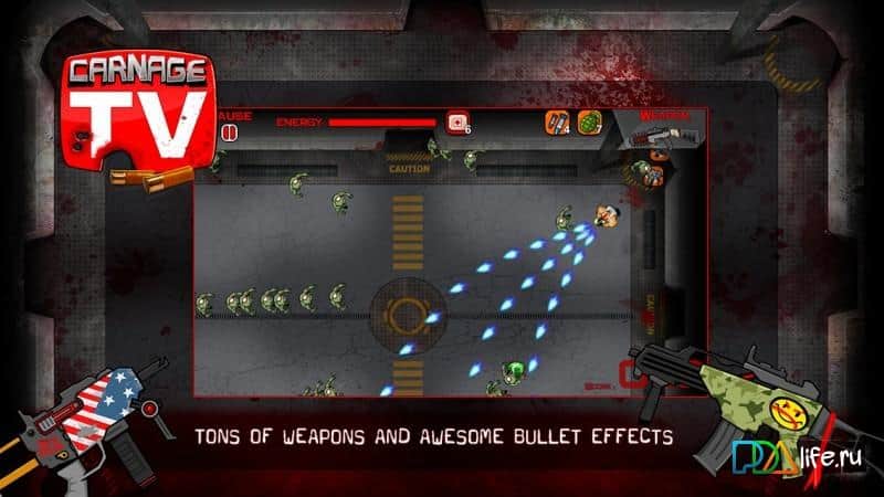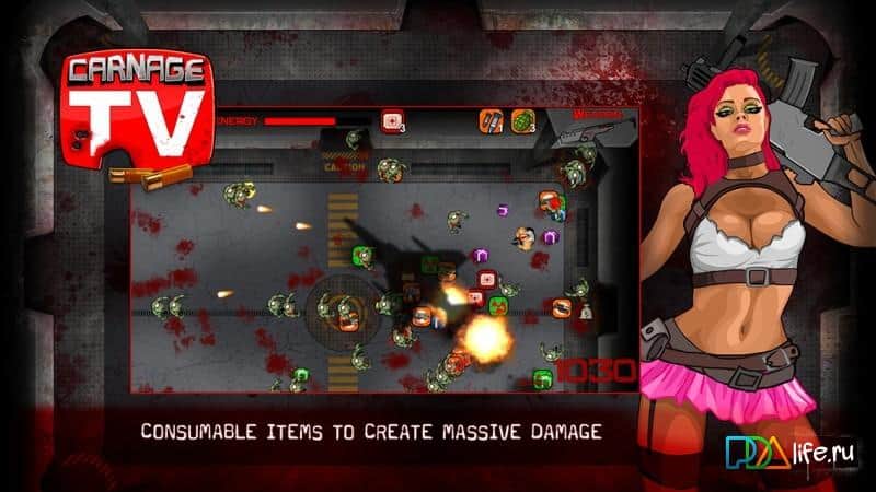 Carnage TV – yukarıdan görünümde bir arcade oyunu, ölümcül bir televizyon şovuna katılacaksınız. Bu oyunda, zombileri yok etmek için bu şova katılmaya gönüllü olan cesur bir kahramanı yöneteceksiniz. Tabancanızla alanda hareket edin ve zombilerin ve canavarların size yaklaşmasına izin vermeden hepsini yok edin. Bu oyunda mümkün olduğunca uzun süre dayanarak kendi rekorunuzu kırın. Bir saniye bile durmayın ve yok ettiğiniz zombilerden yeni silahlar ve bonuslar toplayın. Oyun, karakterin açabileceği geniş bir silah yelpazesi ve tek dokunuşla kolay kontrol ile oyuncuları sevindirecek. Popüler programın yıldızı olun ve milyonlarca hayranın kalbini fethedin.