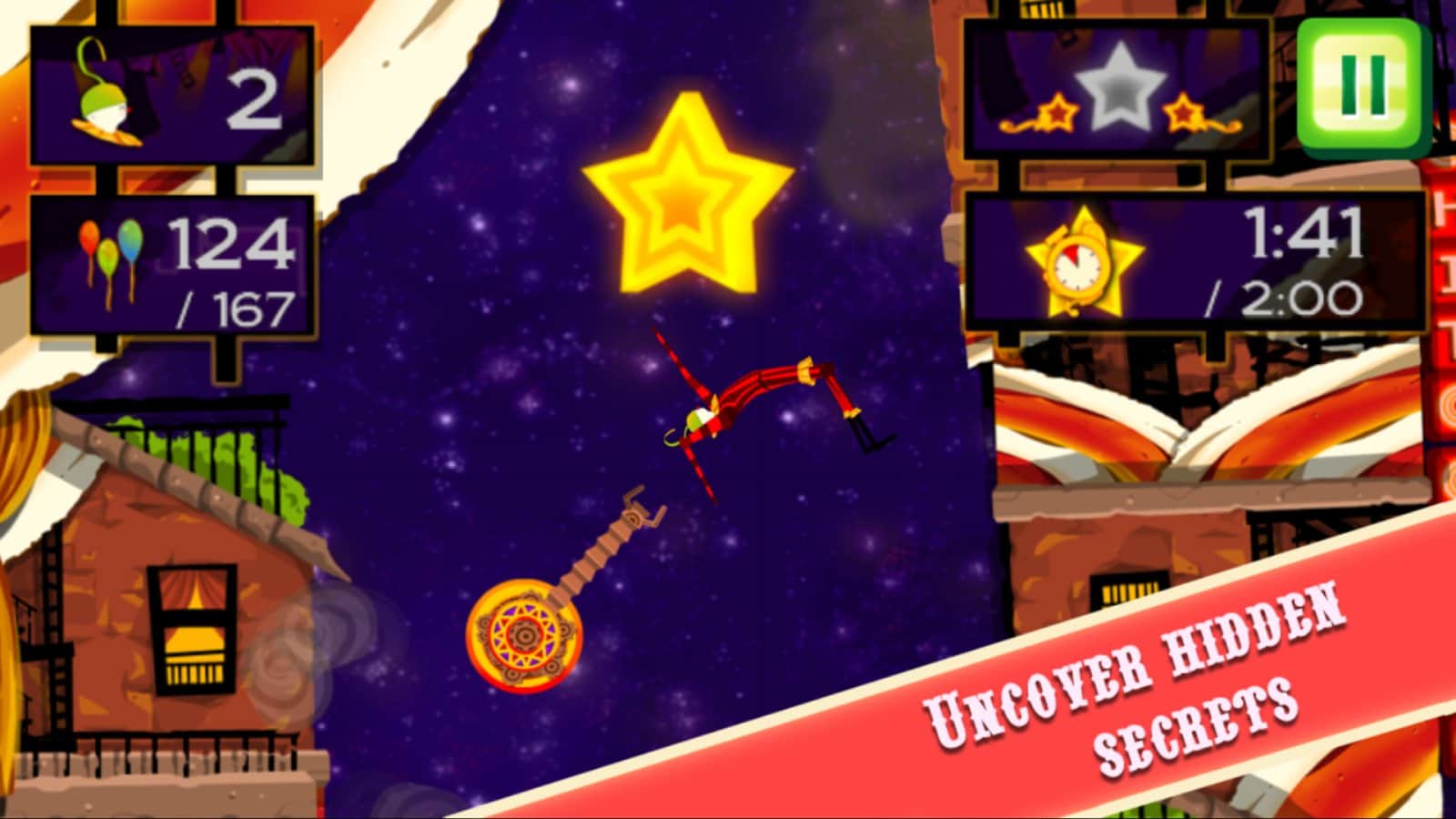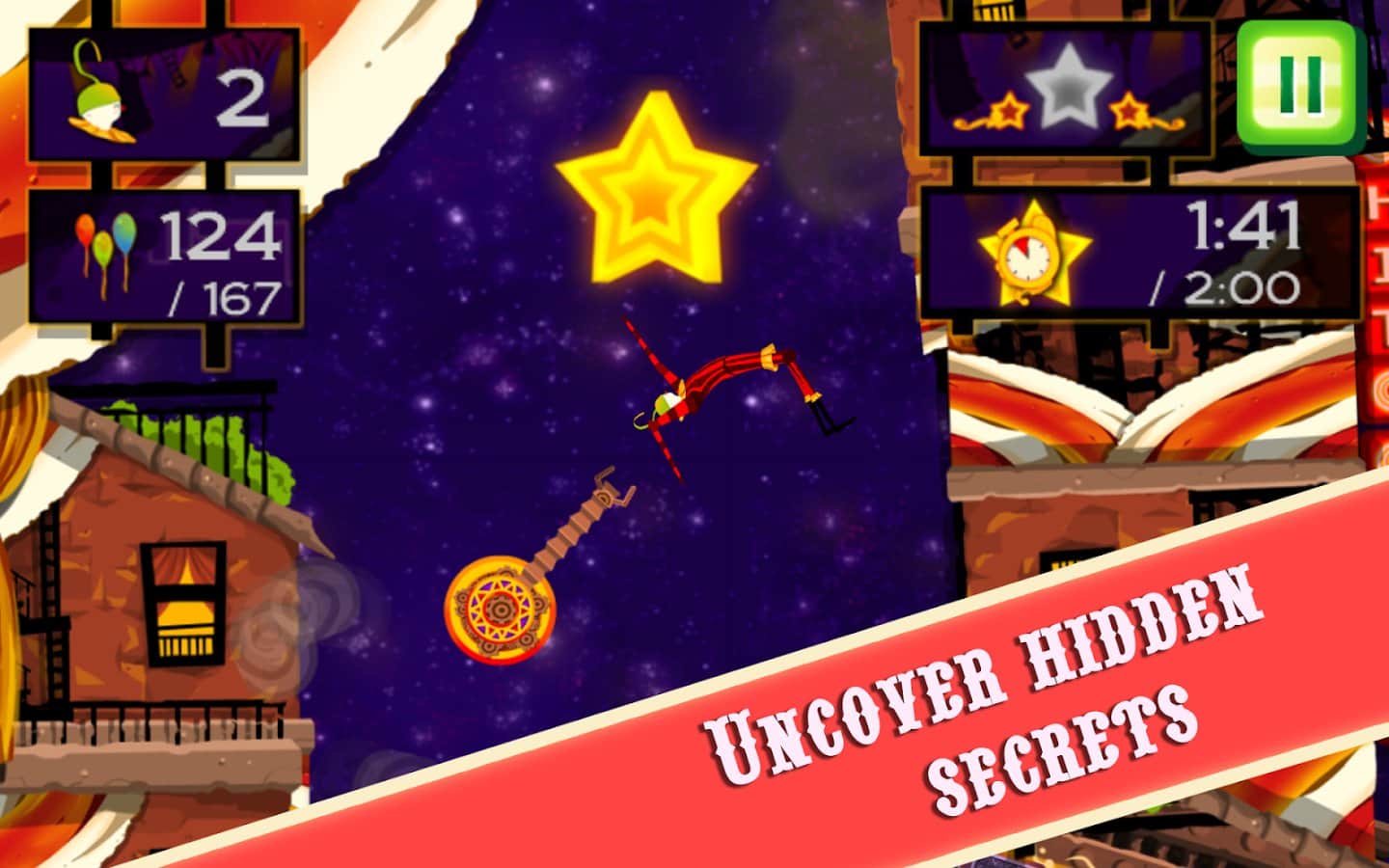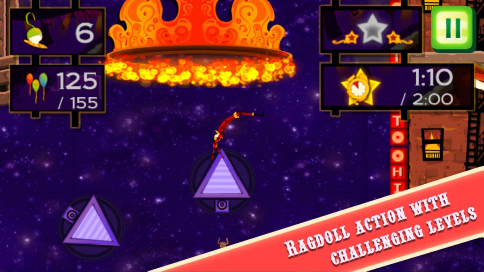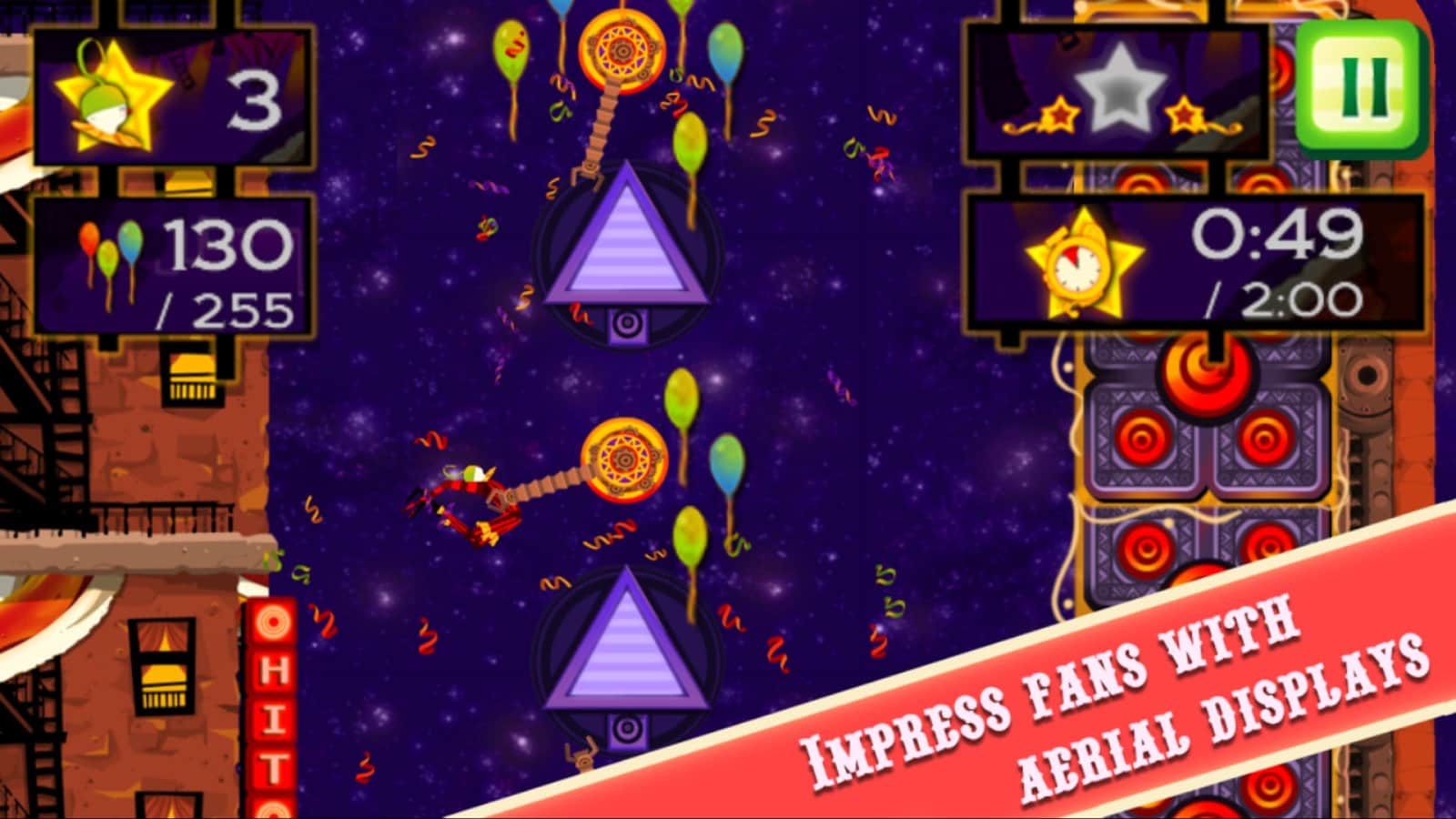 CarneyVale: Showtime – ölümle yüzleşen ve tehlikeli numaralar yapan cesur bir akrobatı kontrol altına alın. Bu oyun, akrobatı bir platformdan diğerine hareket ettirmeniz gereken fizik tabanlı bir oyundur; tüm balonları toplamak ve seviyeyi mümkün olan en kısa sürede tamamlamak için elinizden geleni yapmalısınız. Zıplayın, taklalar atın ve ateş halkalarından geçerken seviyede gizli yıldızları bulmaya çalışın. Tehlikeli seviyeleri geçin ve tüm hayatlarınızı kaybetmeden zorlu görevleri tamamlamaya çalışın. Telefonunuzda gerçekleşecek inanılmaz epik aksiyonların tadını çıkarın ve en deneyimli akrobat olun.