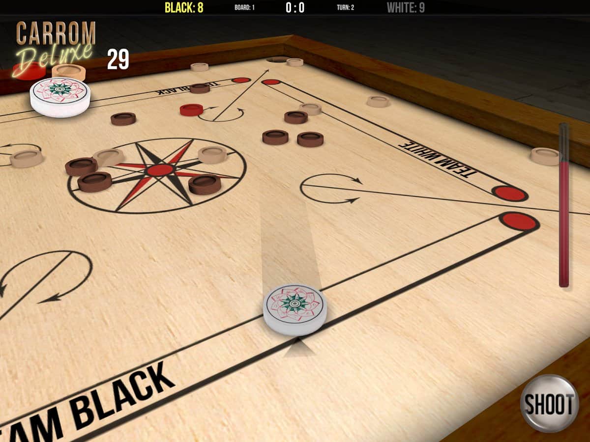 Carrom Deluxe – Güney Asya'da çok popüler olan ve bilardoya benzeyen eğlenceli bir oyundur. Bu oyunda amacınız, oyunun masanın her köşesinde bulunan özel ceplere piyonları atmaktır. Tüm piyonları, rengine bakılmaksızın, ceplere ilk atan oyuncu kazanır. Bu oyunu arkadaşlarınızla aynı anda dört kişiye kadar 'Takım' modunda ya da bilgisayara karşı oynayabilirsiniz. Oyun, 3D grafikler ve birinci şahıs bakış açısı ile sizi memnun edecek, ayrıca piyonların hareketinin gerçekçi fiziği de mevcut. Beğendiğiniz zorluk seviyesini seçin ve oyunun tadını çıkarın.