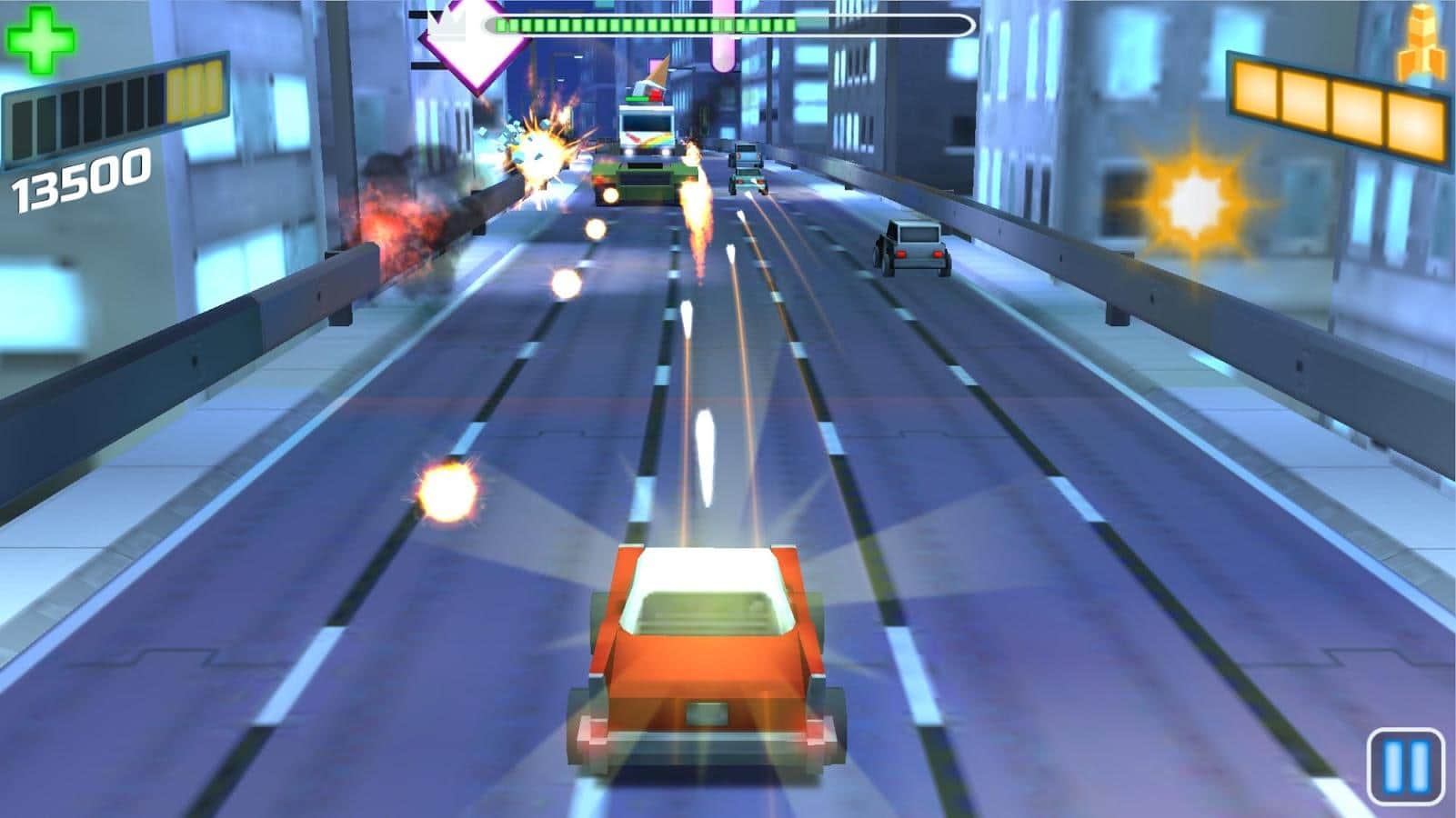 Arabalar vs Patronlar'da kontrol oldukça basittir, araç kendi kendine hareket eder, göreviniz sadece onu trafik akışında ve sayısız düşmanın arasında yönlendirmek ve elbette rakiplerinize ateş etmektir. Geliştikçe, aracınızı geliştirme ve cephaneliğinizi önemli ölçüde genişletme imkanı bulacaksınız. Oyunun nihai hedefi, maksimum puan toplamak ve liderler tablosunda yükselmektir.
