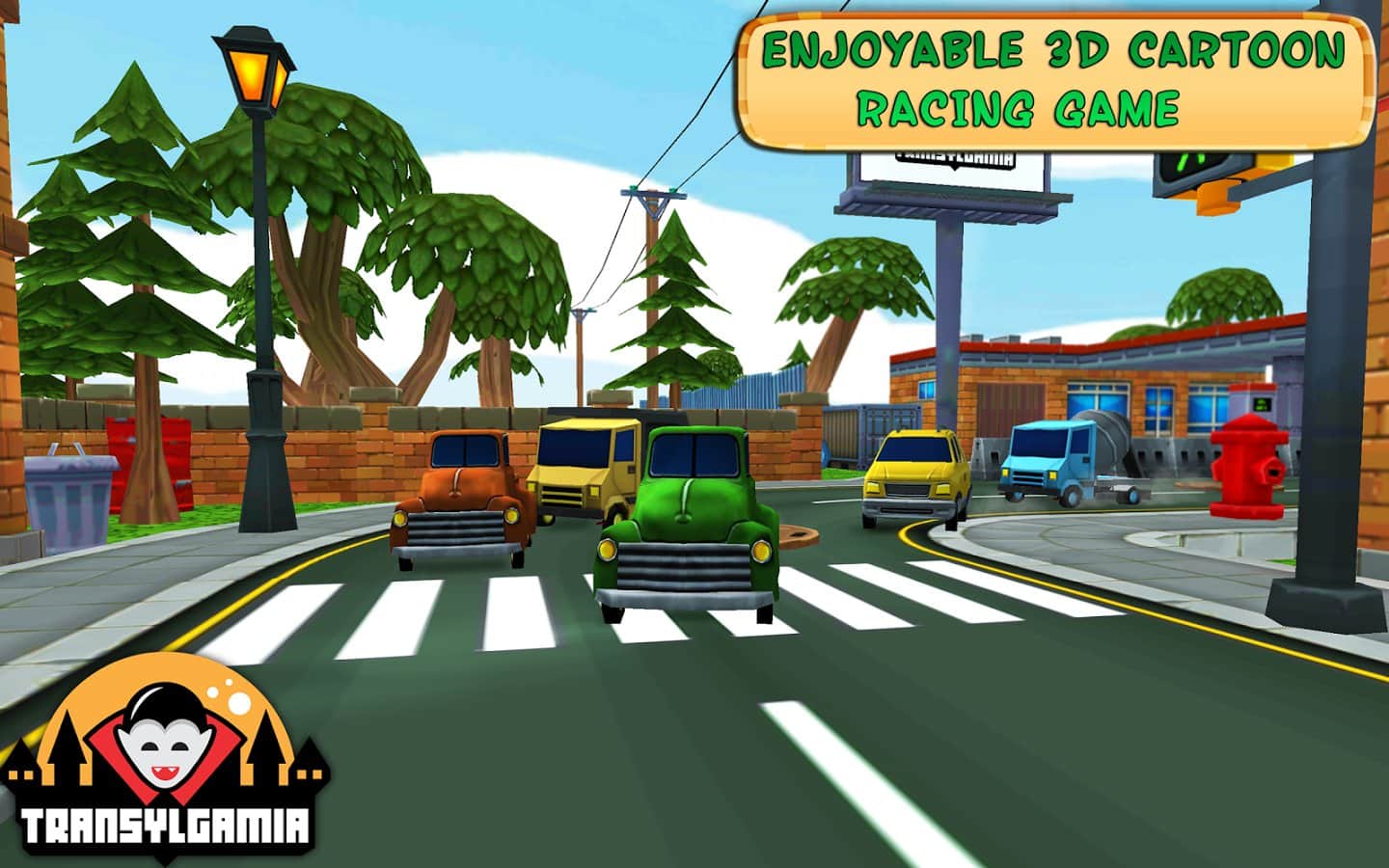 Çizgi Film Yarışı 3D Araba Sürücüsü – sizi oyuncak arabalar dünyasına taşıyan bir Android oyunudur. Bu oyunda, kontrolünüz altında olan küçük bir arabayı, en kısa sürede parkurda sürdüreceksiniz. Arabayı yönetin ve çarpışmalardan kaçınarak hareket etmeye devam etmesini sağlayın. Ayrıca, ekrandaki köşede bulunan haritayı izleyerek parkurun beklenmedik virajlarına hazırlıklı olun. Kamyon, beton mikseri ve diğerleri gibi yeni arabaları keşfedin. Arabanızı farklı kameralar kullanarak izleyin.