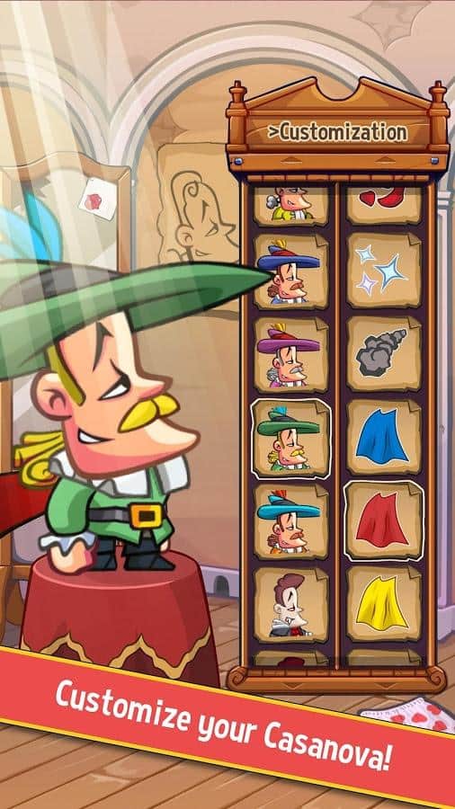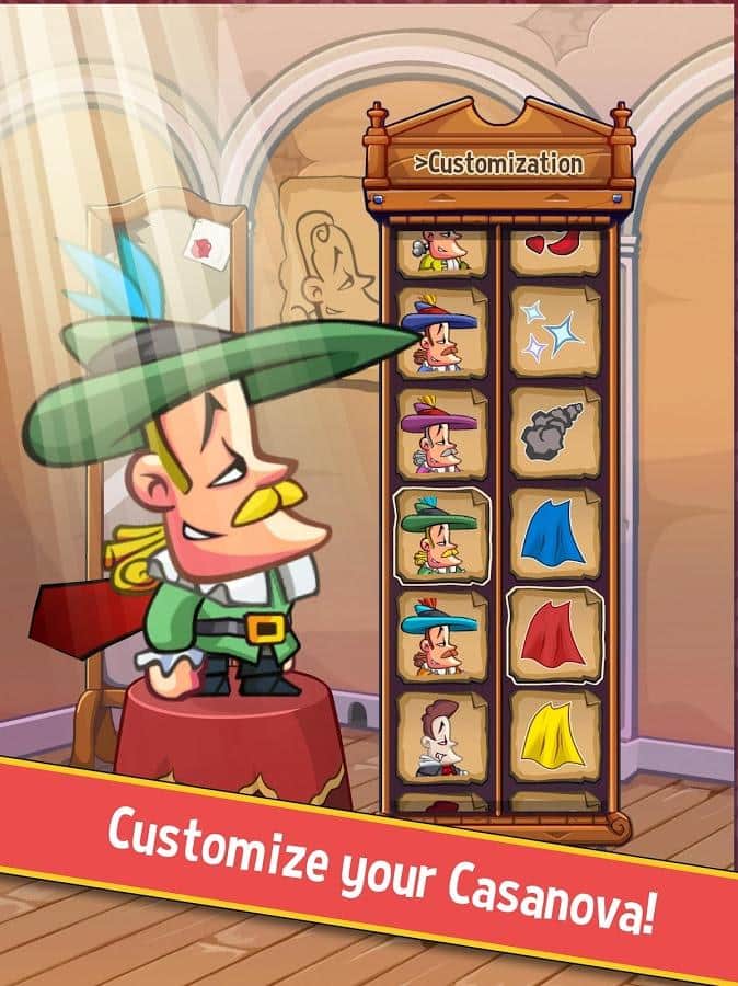 Casanova Şövalye – Android için eğlenceli bir oyun, burada Casanova'ya mümkün olduğunca çok güzel kızı öpmesine yardımcı olacaksınız. Bu oyunda aşk ve romantik ilişkilerin şehri Venedik'e gideceksiniz. Bu oyunda Casanova'ya, özel platformlarda zıplayarak ve yolundaki tuzakları ve düşmanları aşarak kulesinin en tepe noktasına tırmanmasına yardımcı olacaksınız. Doğru zamanda telefonunuzun veya tabletinizin ekranına dokunun ve Casanova'nın inanılmaz zıplamalar yapmasına yardımcı olun. Kahramanınızı tüm tehlikelerden ve engellerden geçirin ve belirlenen hedefe ulaşın. Kahramanınız için güzel kostümler satın alın ve özelliklerini geliştirin. Bu oyunda kendi rekorunuzu belirleyin.