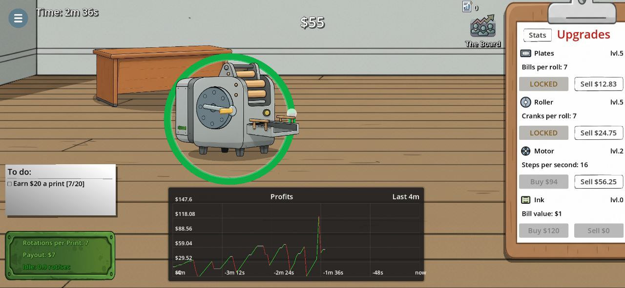 Cash Crank - Baskı makinenizi çalıştırın ve basit bir döngüyü para akışına dönüştürün! Bu dinamik oyunda gerçek bir milyarderin heyecanını deneyimleyeceksiniz: döndürün, kazanın ve servetinizi uçuk rakamlara çıkarın. Ne kadar hızlı hareket ederseniz, o kadar çabuk hayal ettiğiniz milyara ulaşacaksınız. Basit mekanikler, hızlı ilerleme ve sonsuz başarı atmosferi, oyunu son derece çekici kılıyor. Finansal bir deha olabilecek misiniz?